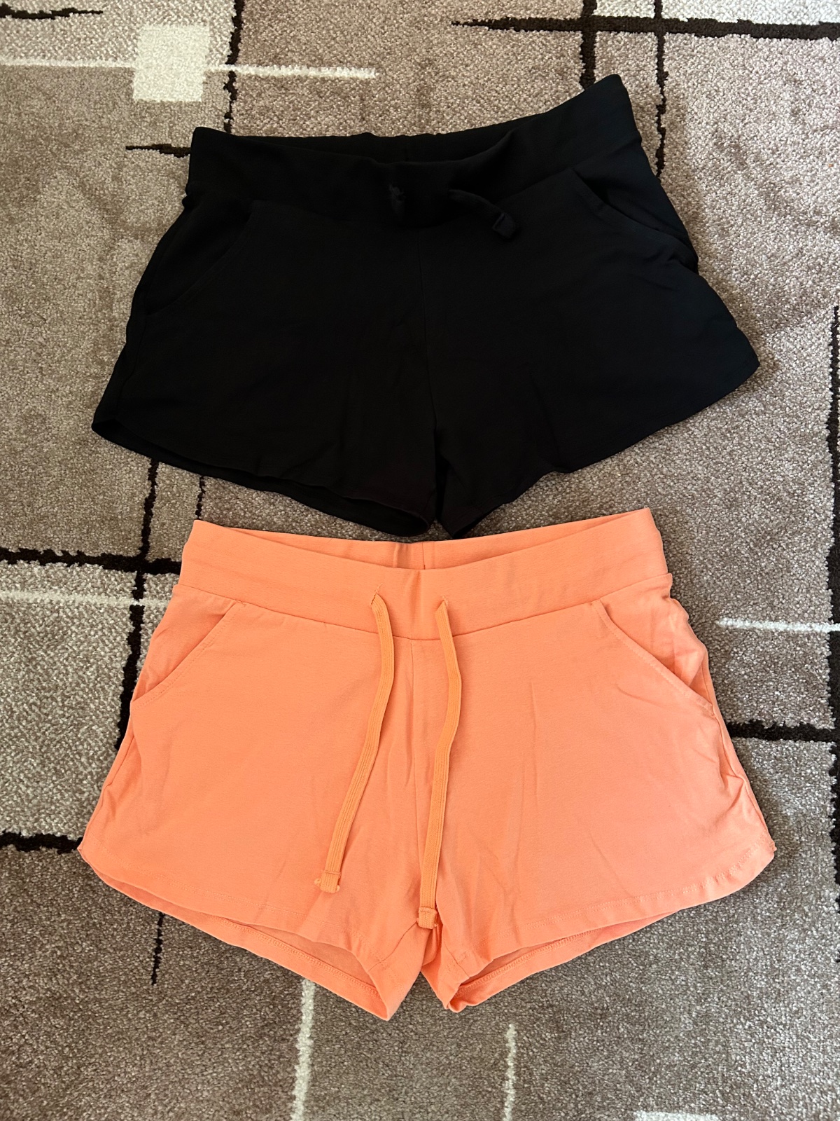 Pohodlné dámske šortky v čiernej a lososovej farbe.100%-ný stav,bez poškodení.Materiál je veľmi príjemný na nosenie.