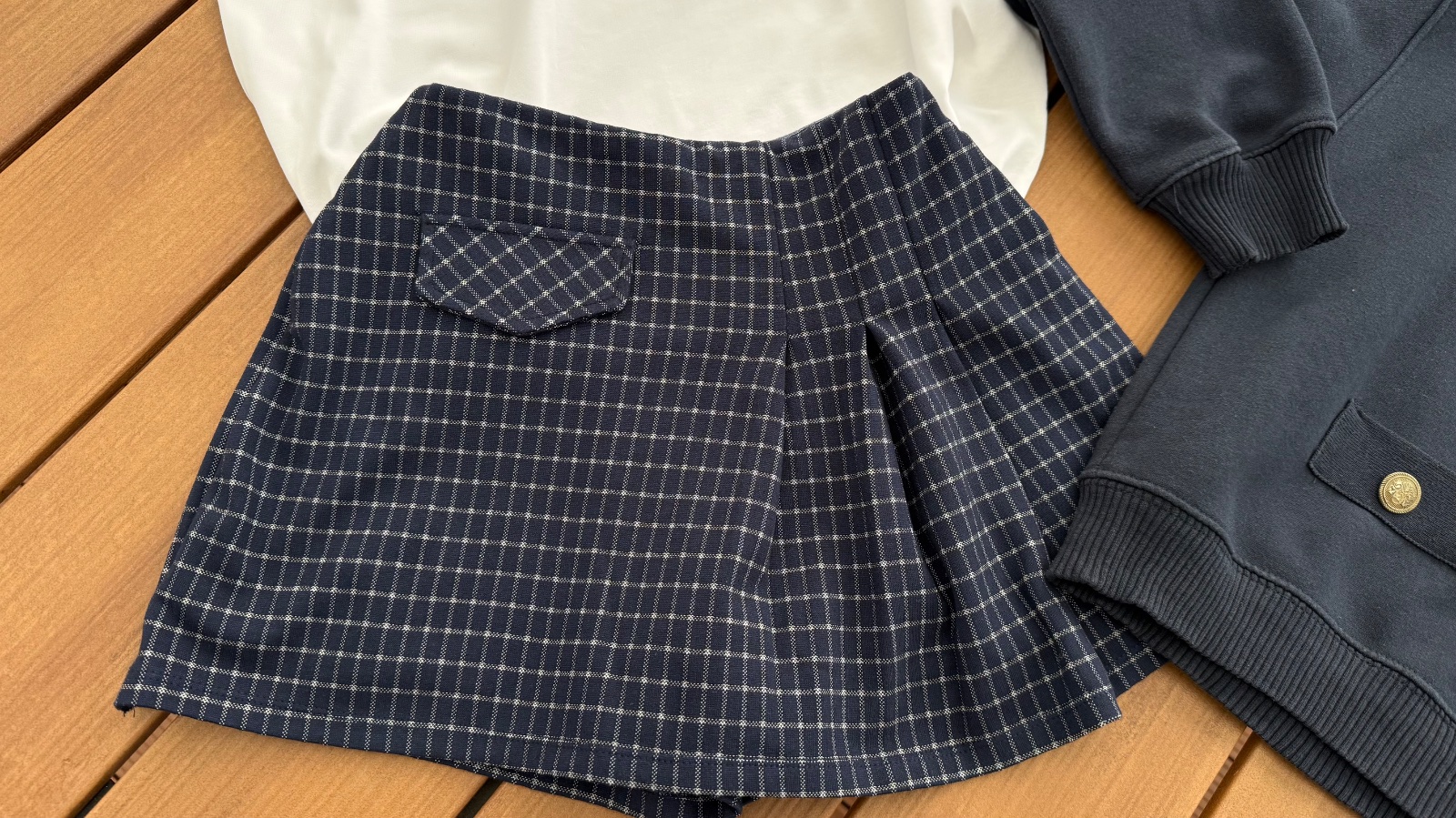 Raz oblečene kockovane namornicky modre sukno-šortky