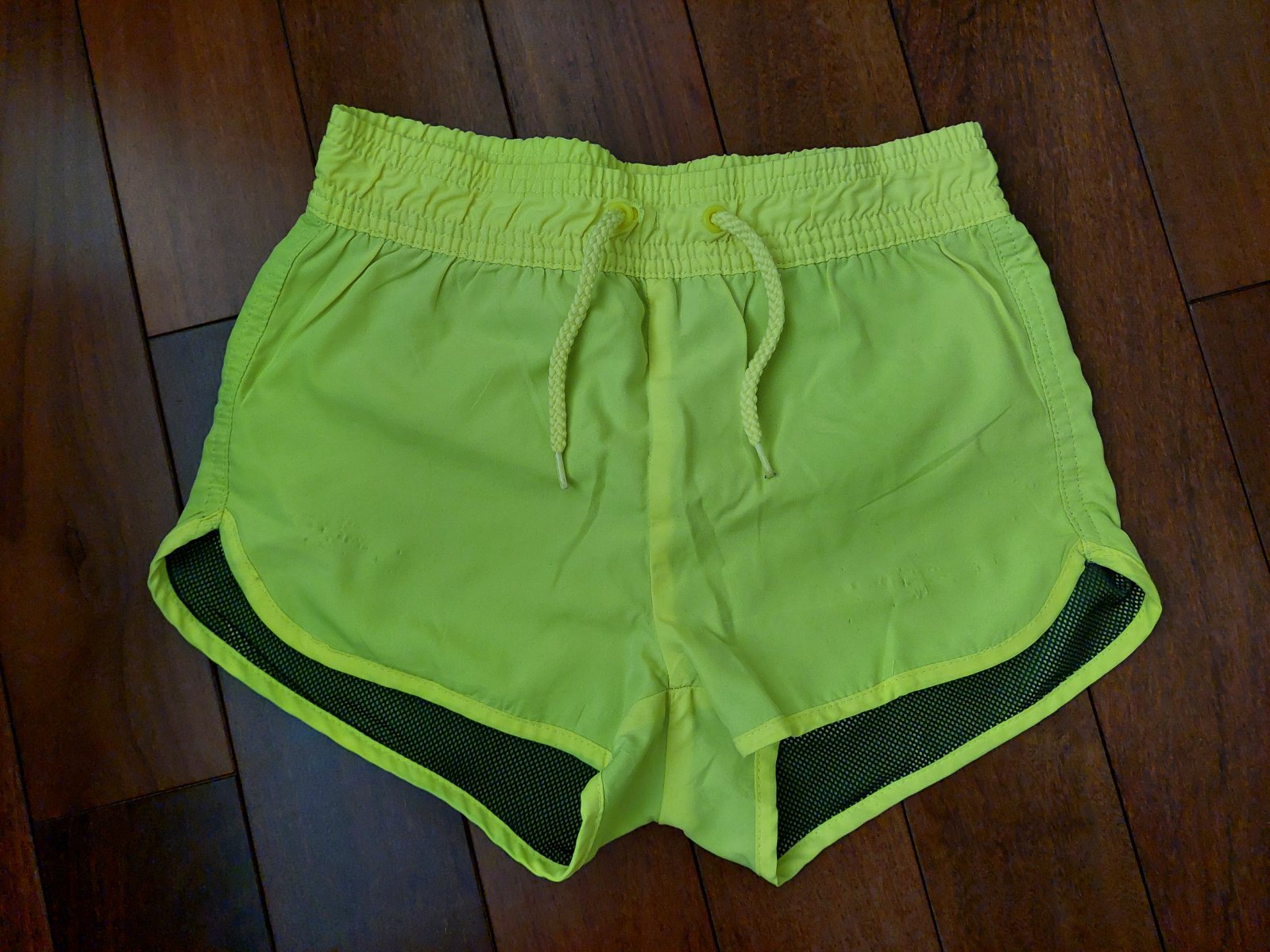 Šortky so sieťovinovou podšívkou, na pravej nohe je látka šuchnutá (nie je roztrhaná), iné chyby nemajú; cena symbolická alebo ich pribalím zadarmo k nejakému nákupu.