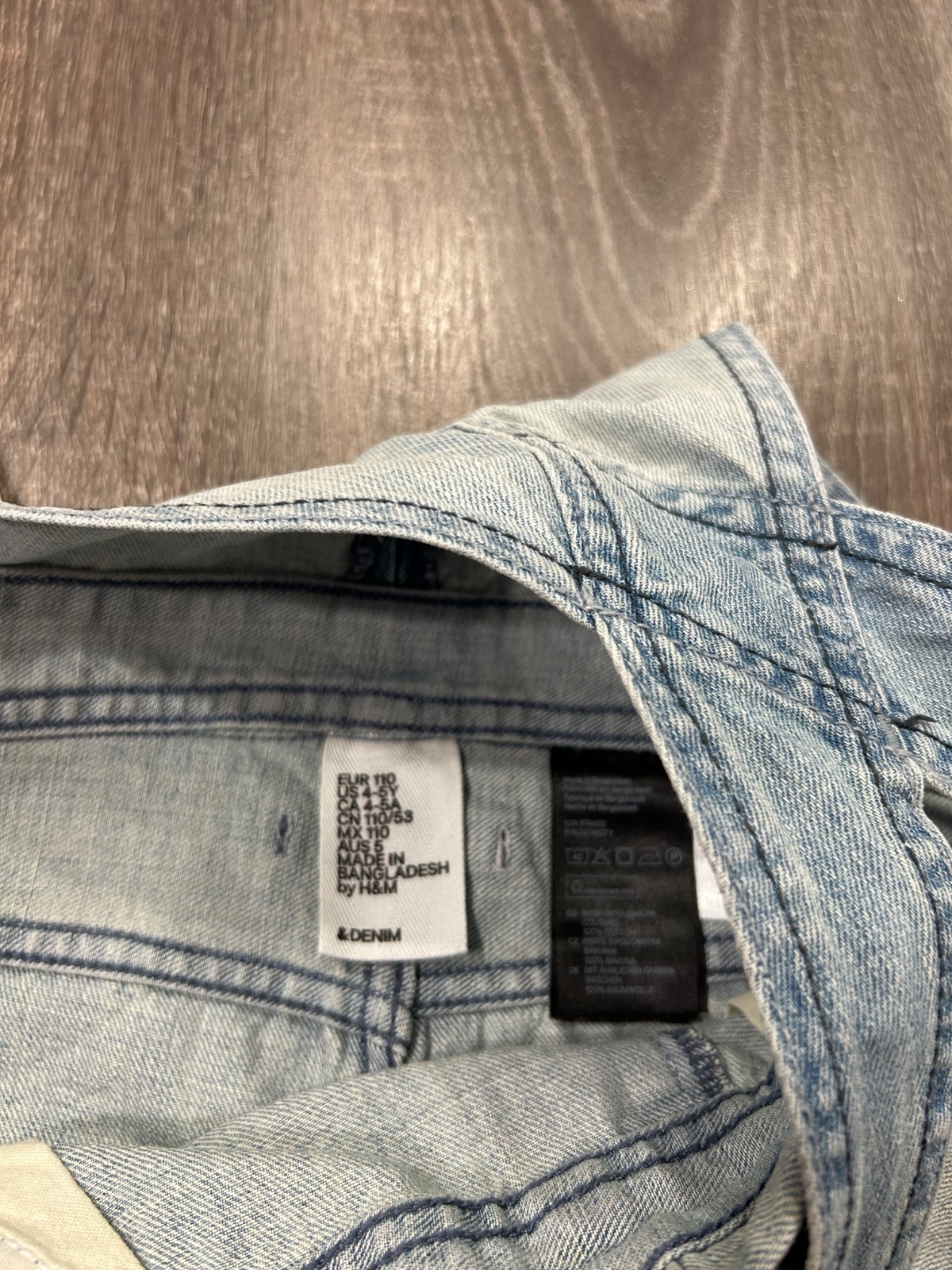 16.H&M štýlove riflove kratasy na traky vo velkosti 4-5 rokov,110,mini fliacik na kolene,dlzku ramienok si viete upravit,dlzka od pasa dole je 39cm,sirka v pase je cca 32x2cm