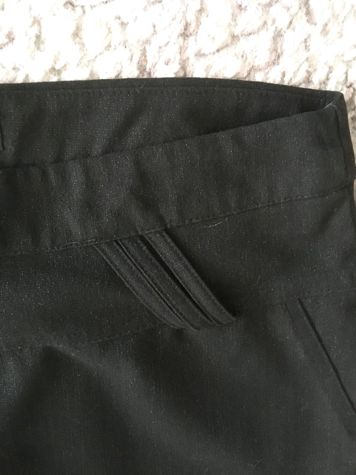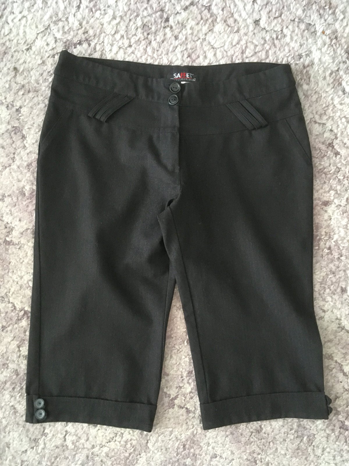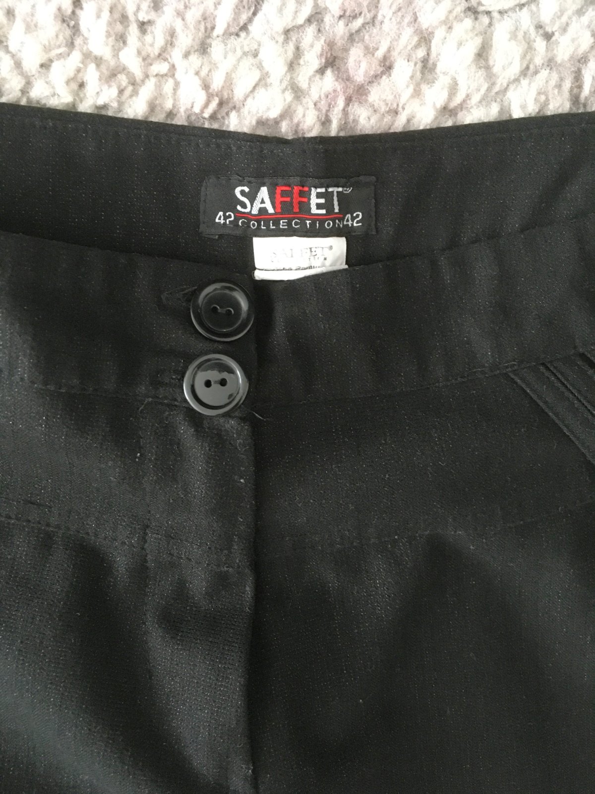 dobrý nosený stav, zapínanie na zips a gombíky, bez vreciek, pútka na opasok, materiál: 60% bavlna, 30% polyester, 5% elastan