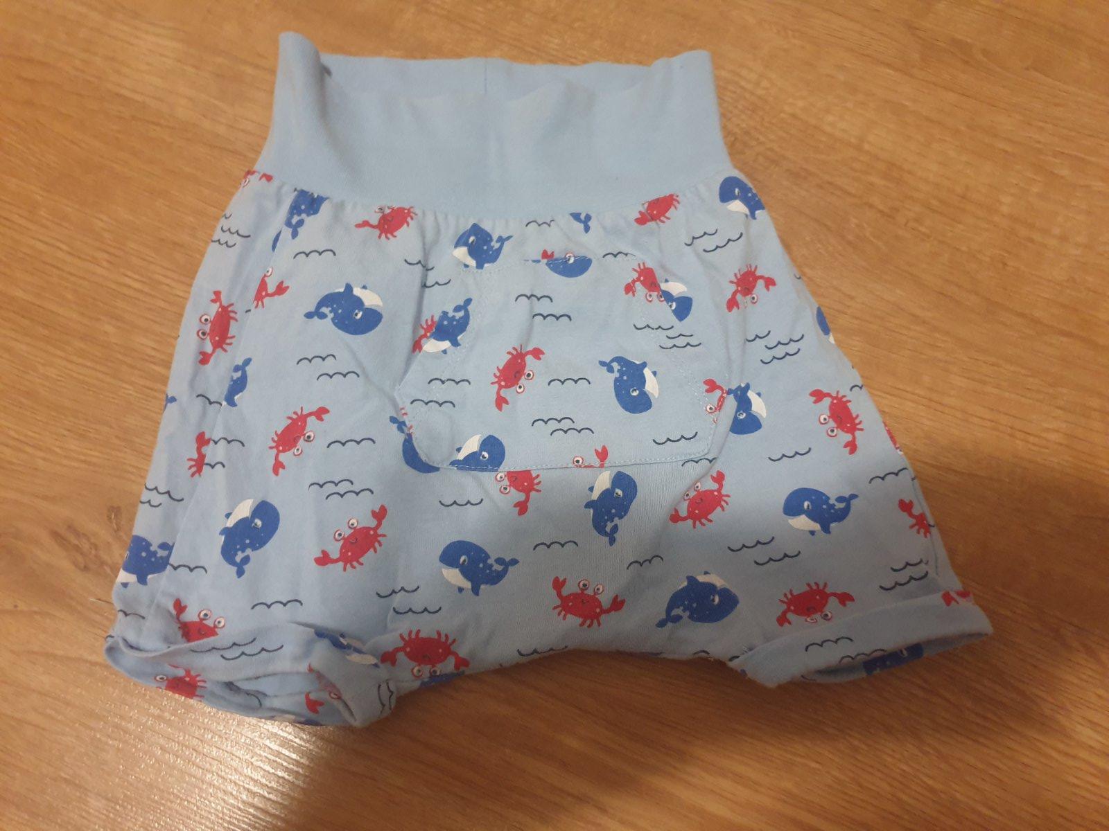 Krátke nohavice tmavo modré sú číslo 62 ale prídu mi väčšie. Ako 68. Sú nové nenosené ( tmavomodré). Tie druhé sú nose ale v zachovalom stave.