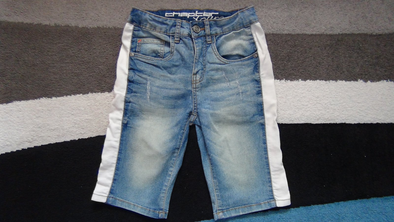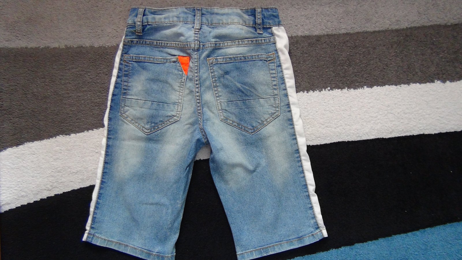 Predám nepoškodené chlapčenské šortky z mäkkej elastickej rifľoviny značky Takko vo veľkosti 140. Šortky majú regulovateľnú gumu v páse. Celková dĺžka predného dielu je 45,5cm, dĺžka zadného dielu 48cm, dĺžka od rozkroka je 25,5cm, šírka pása je 31cm.
