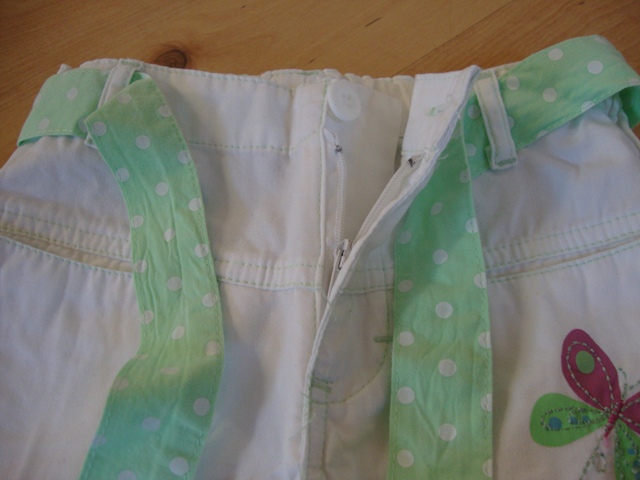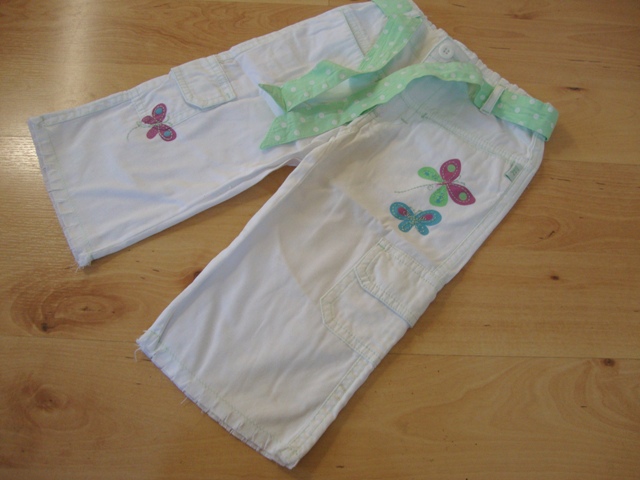 Krásne letné bavlnené nohavice (100%-né nohavice) s bodkovaným opaskom, polohovateľný pás, V predu vačky + vačky na kolenách, vzadu vačky s poklopmi.
