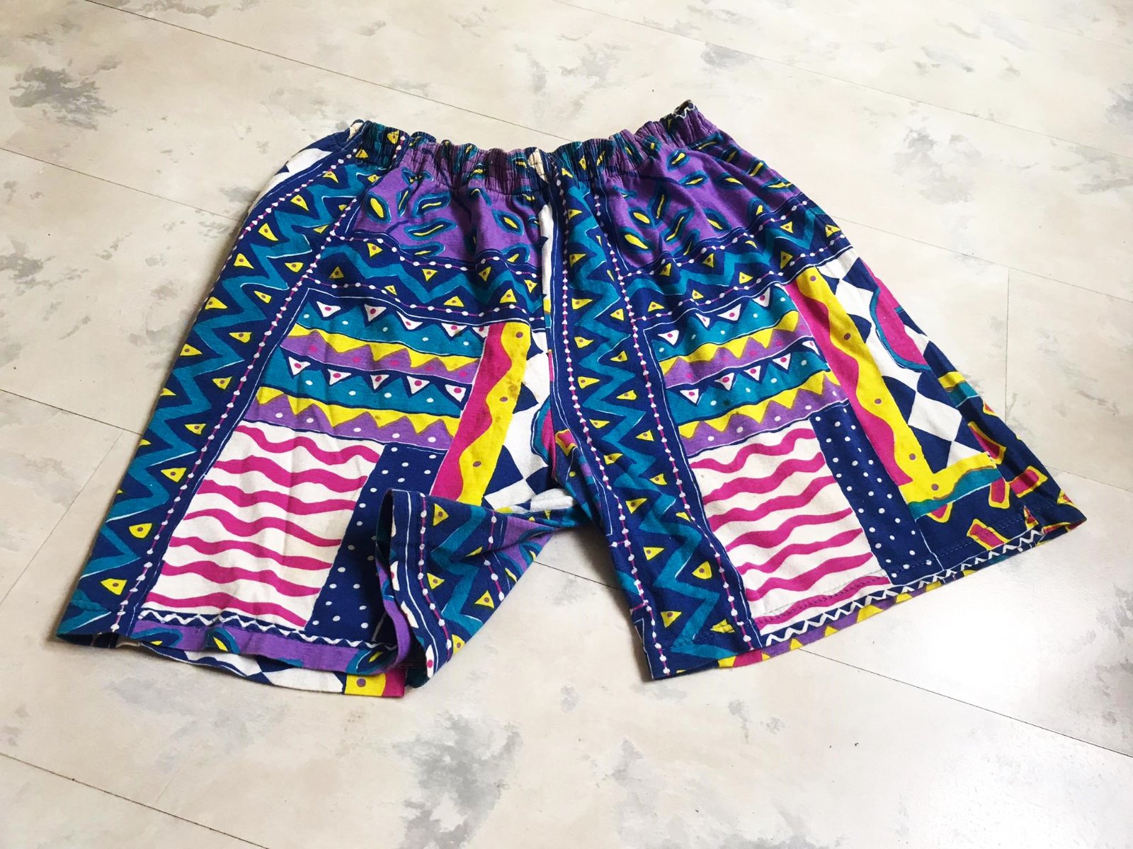 pestré kraťasy s bočnými vreckami, výrazný pestrofarebný etno vzor ,vhodné aj na spanie v lete