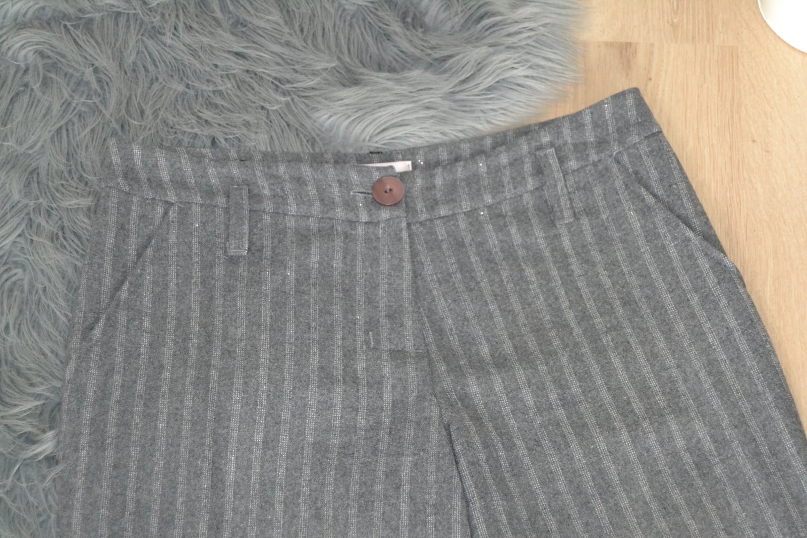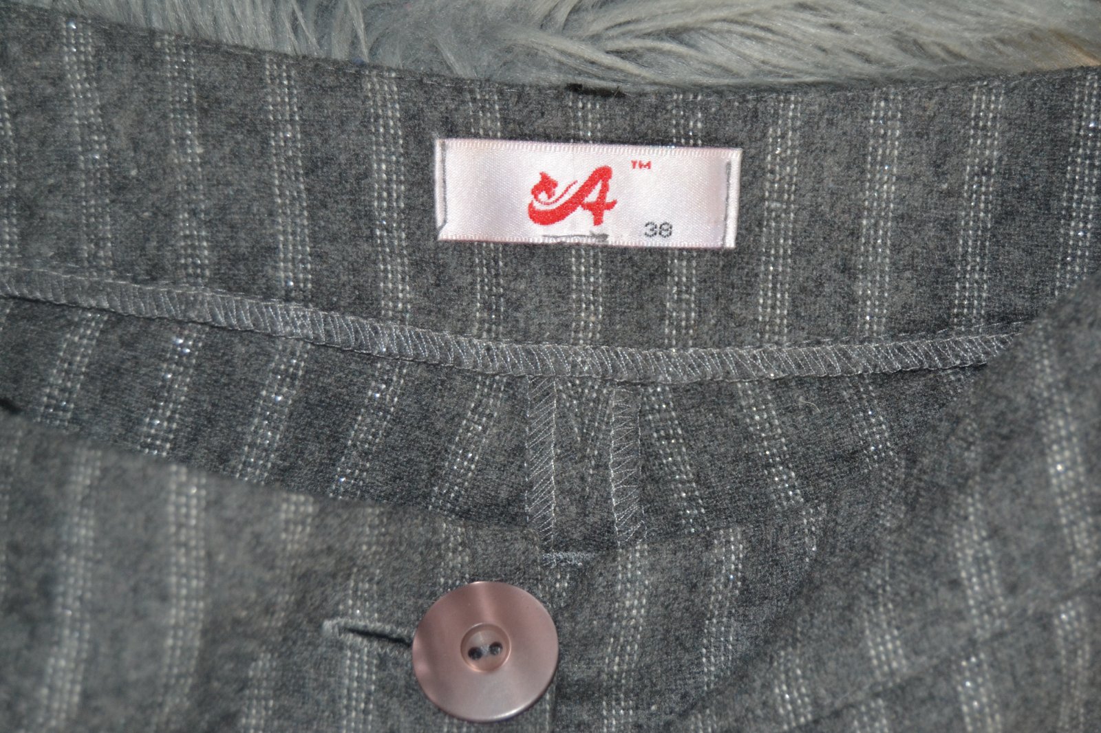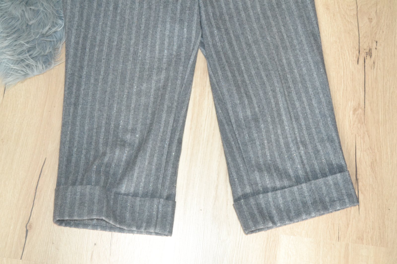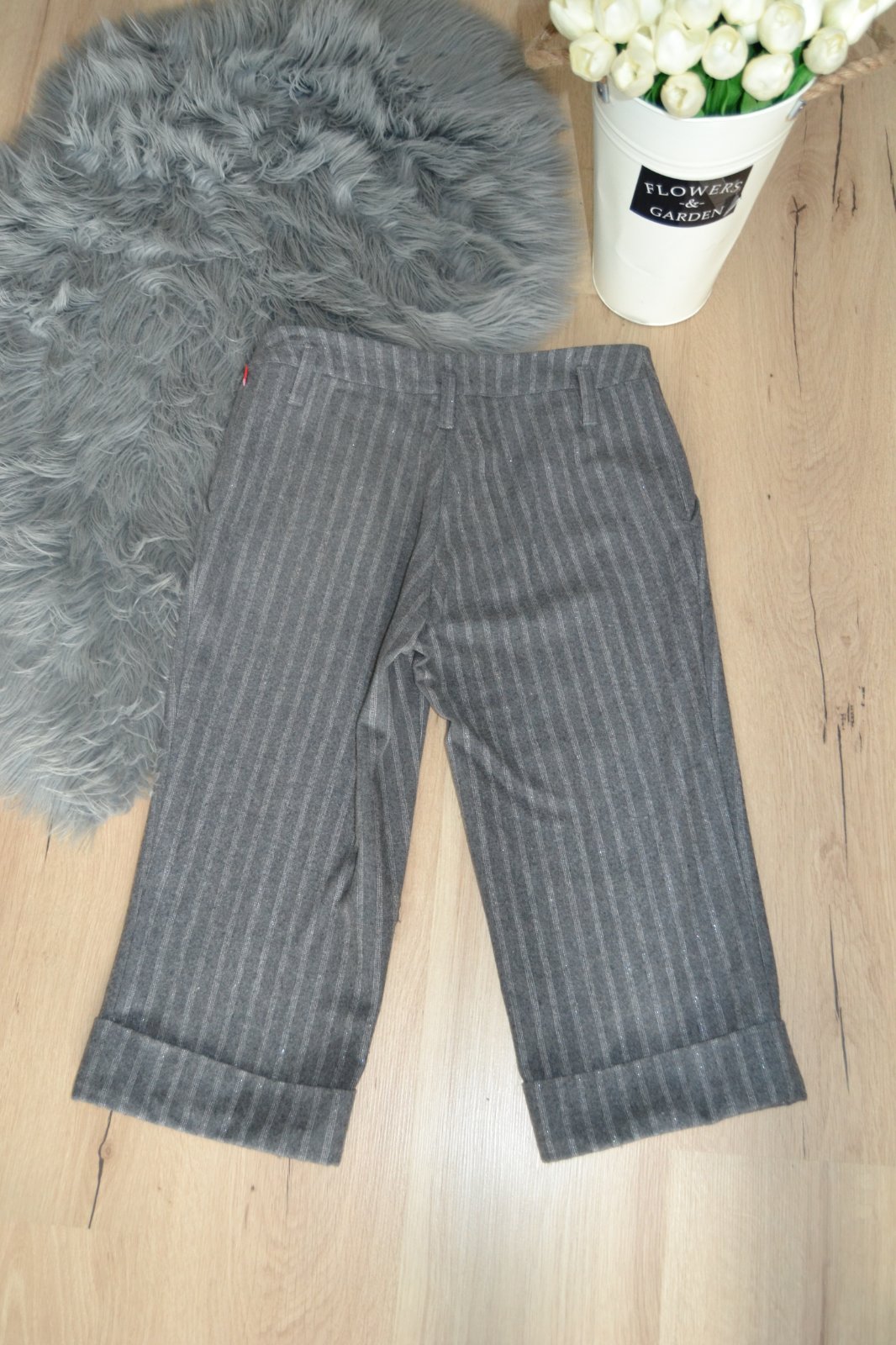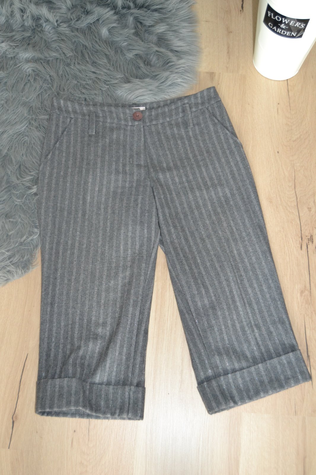 Dámske nohavice so striebornými prúžkami, sú 3/4 z teplejšieho materiálu, veľkosť 38, obvod pásu 80 cm, dĺžka 70 cm.