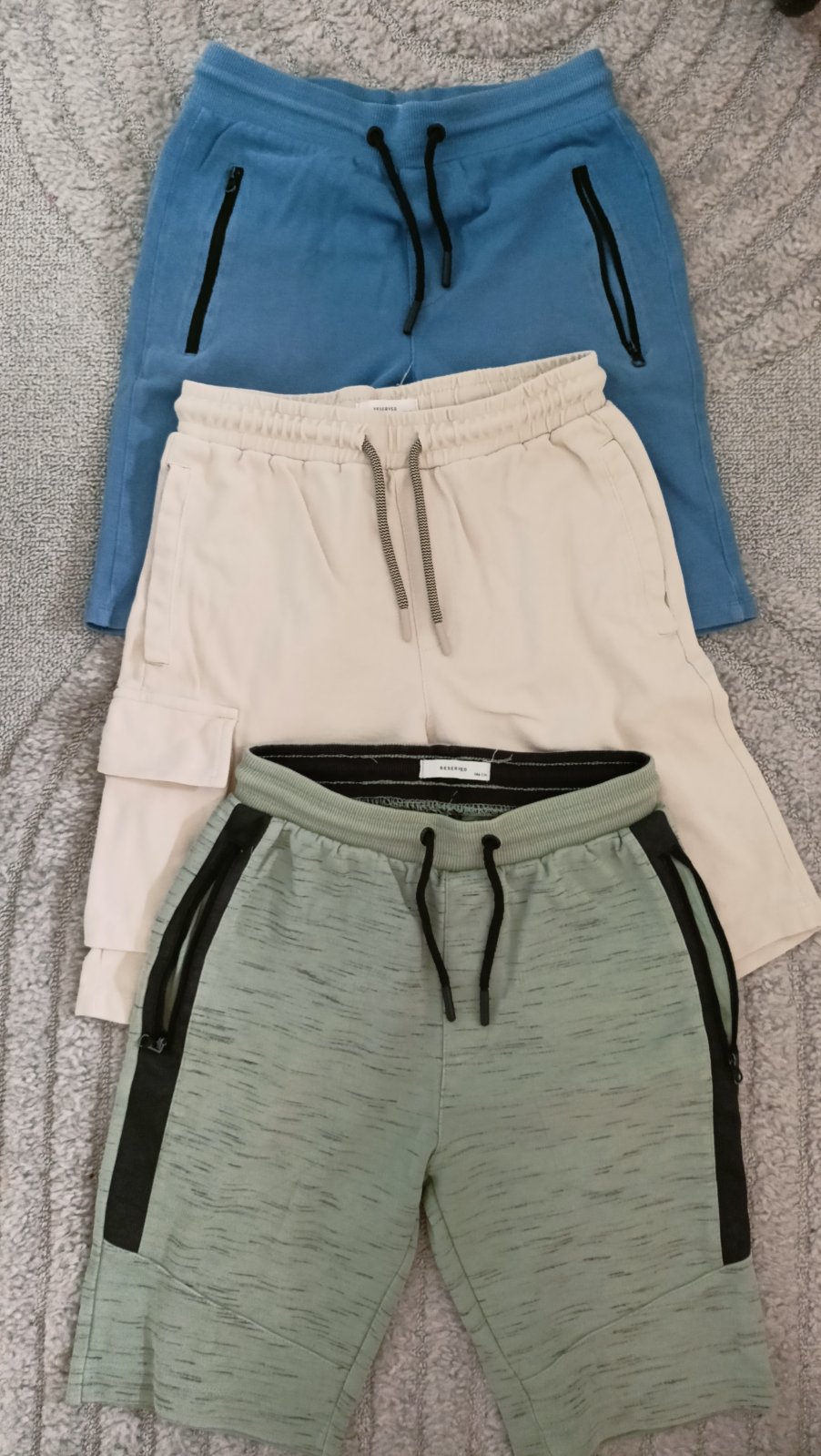 3 kraťasy s vreckami bez chýb.