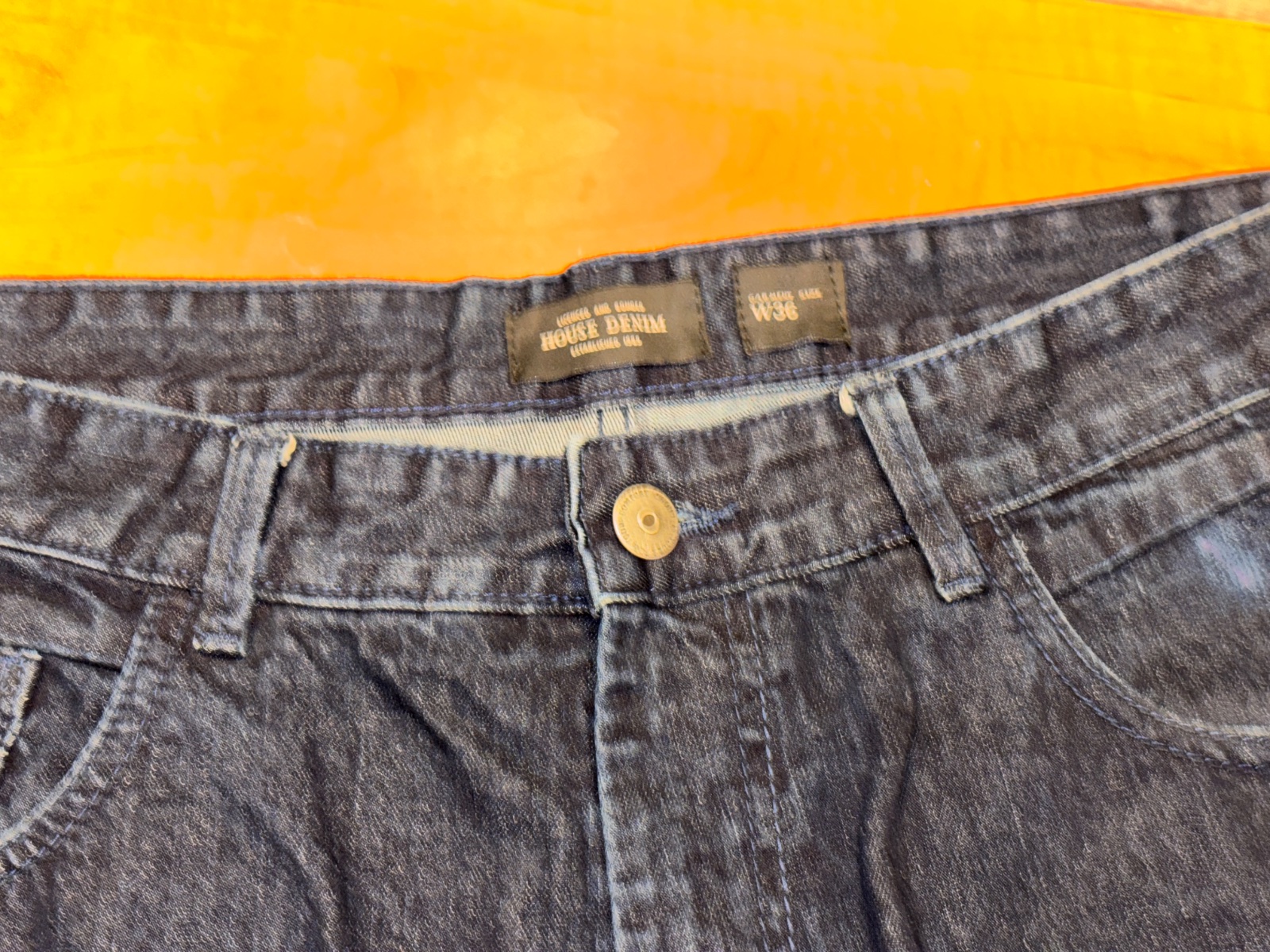 Zn House denim velkost W36, v dobrom nosenom stave, pri vrecku vysuchana farba.Rozmery pás 2x 52cm, dľžka 66cm