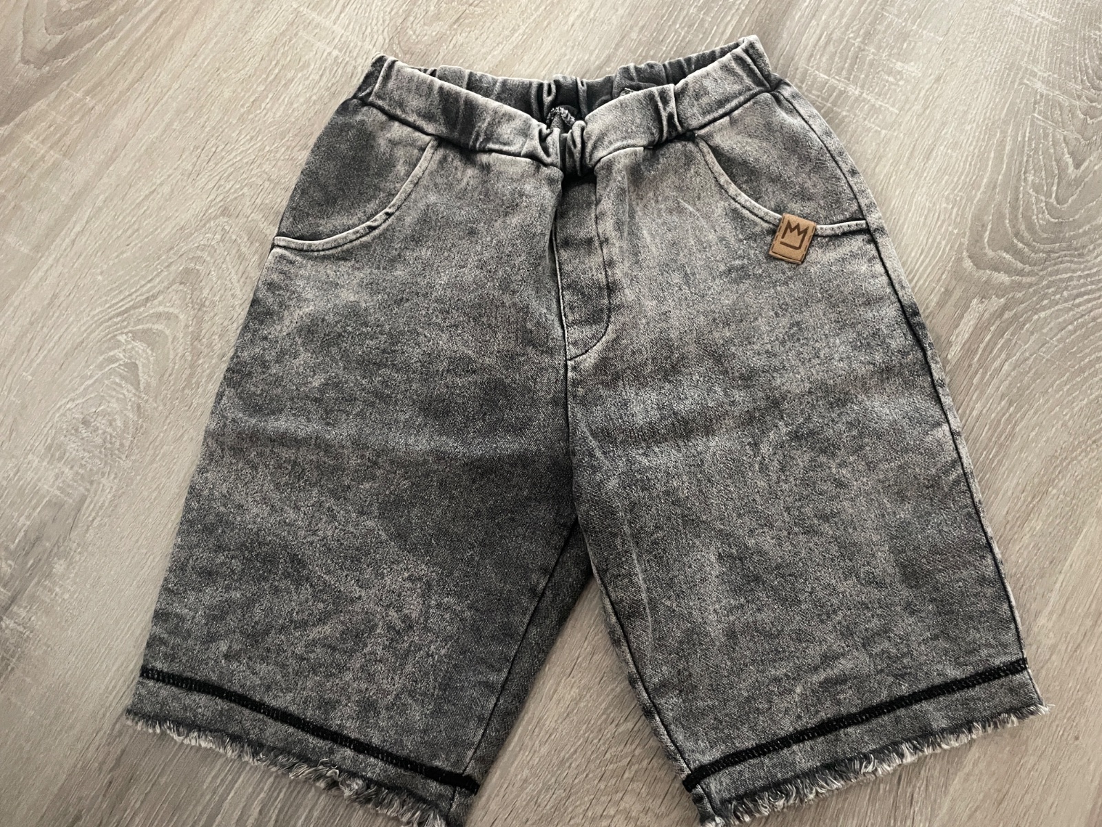 Predam malo nosene kraťasy v top stave. Velkost uvedena 140. V pase je gumicka. Su z prijemnej makkej latky, imitácia rifloviny. Celkova dlzka je 39 cm, sirka v pase v pokoji je 24 cm, natiahne sa do 31 cm.