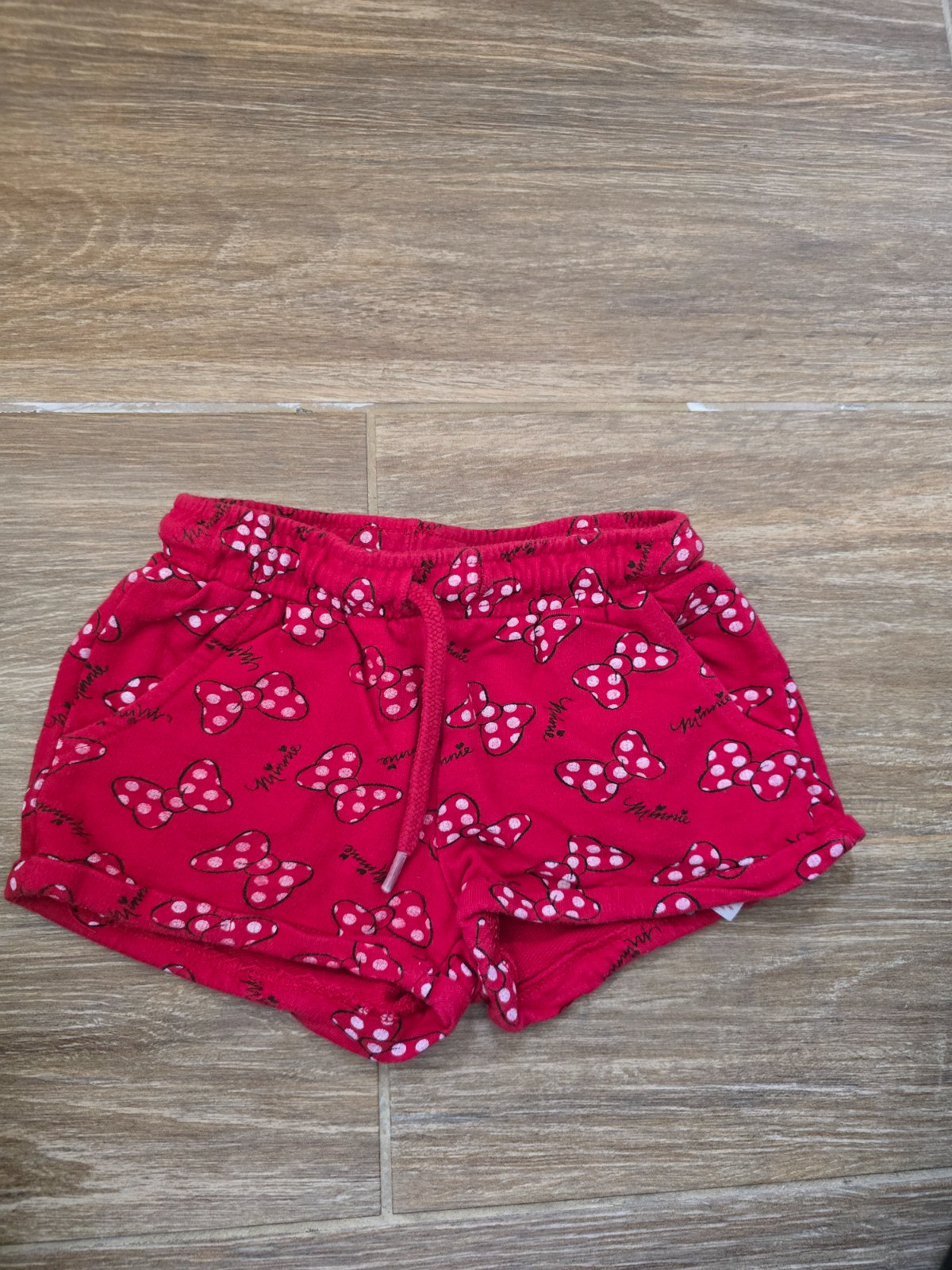 Krasne sortky s Minnie Mouse, vo veľkosti 104, v pase su vdaka snurkam prispôsobivé, prkny noseny stav bez poskodenia
