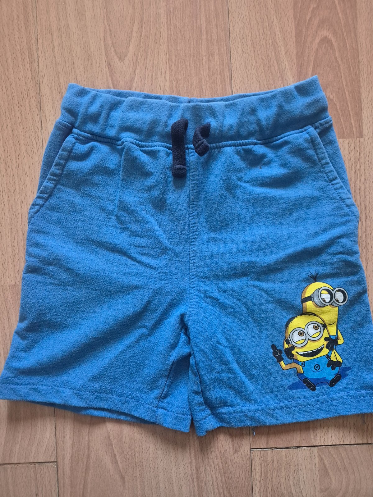 Predam teplákové kratase s potlačou Mimoni,vel.122,dobrý stav akurát hore je ako keby kúsok od fixky, vid foto,značka Kik,cena 1,50€