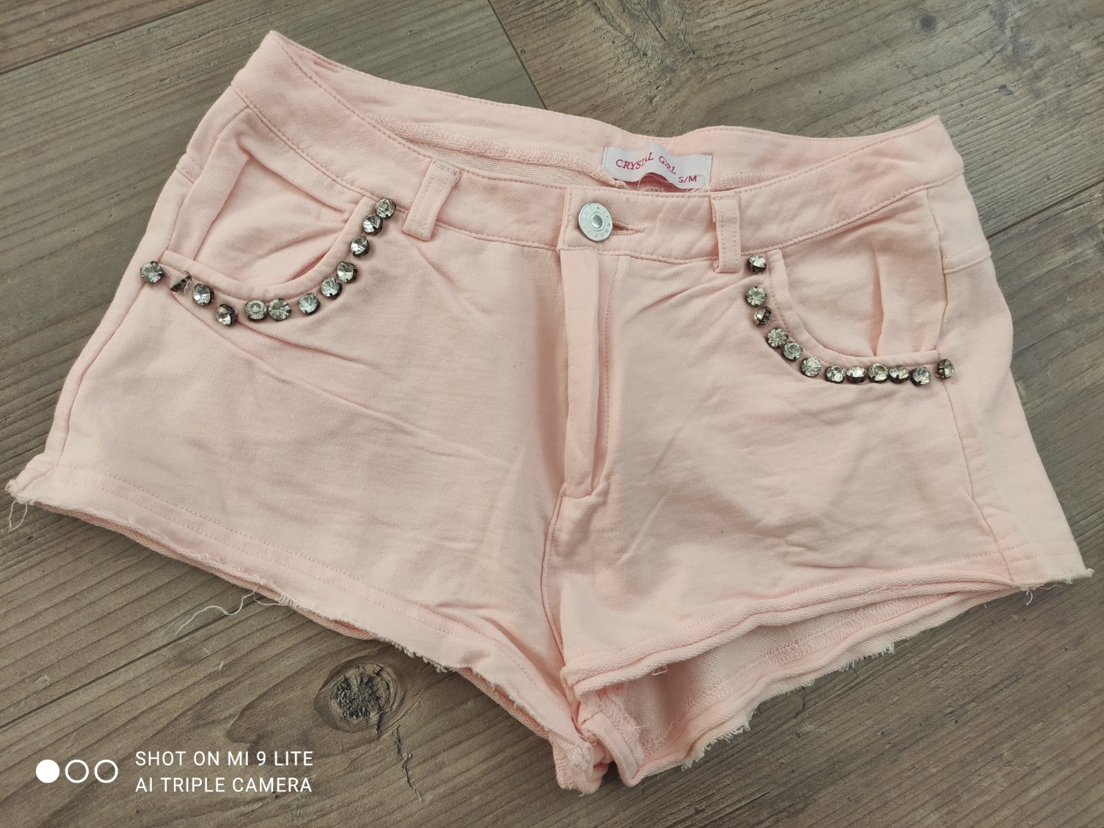 bledo ruzove mini sortky bavlnene s kamienkami a cipkou na zadnych vreckach. kratasky boli nosene. chyba jeden kamienok . velkost pisana S/M ,ale sedia iba na S ale su pohodlne a elasticke