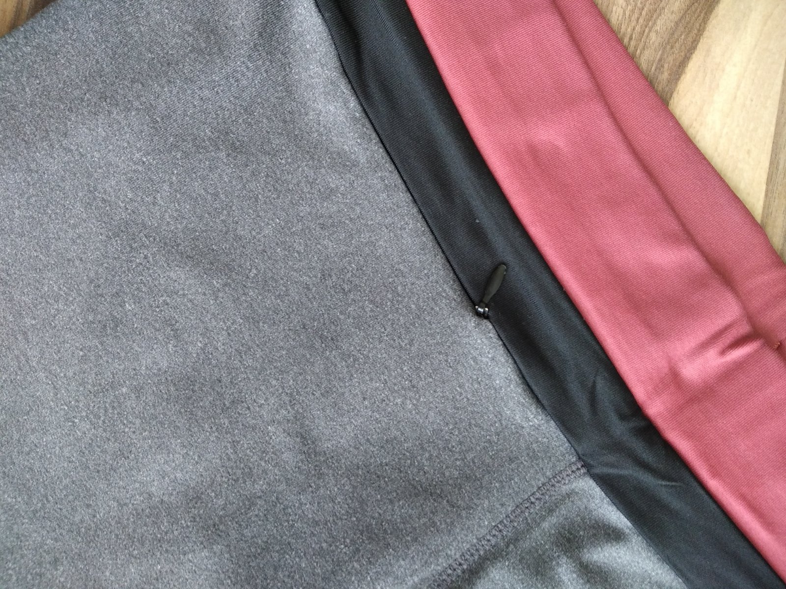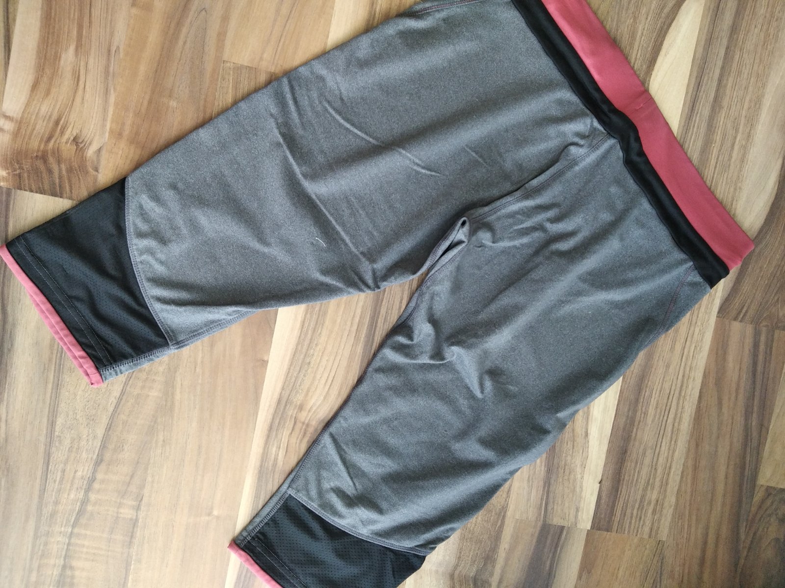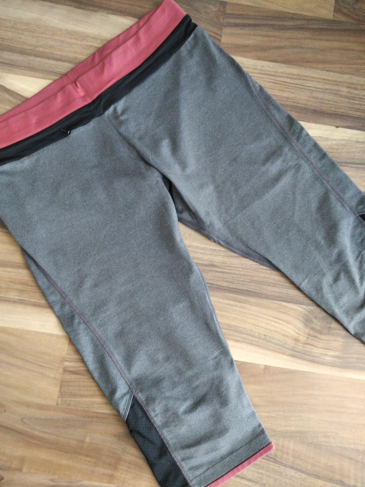 Legíny, veľkosť L, 3/4 dĺžka, farebné pásiky trošku popukané praním, inak bez poškodenia