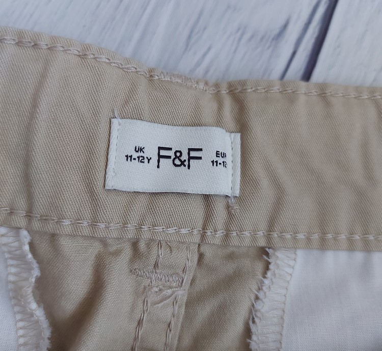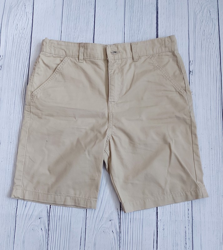 Krátke nohavice v top stave, raz oblečené. Bavlnené s regulovaným pásom. Vrecká vpredu. Pre 11-12 rokov.