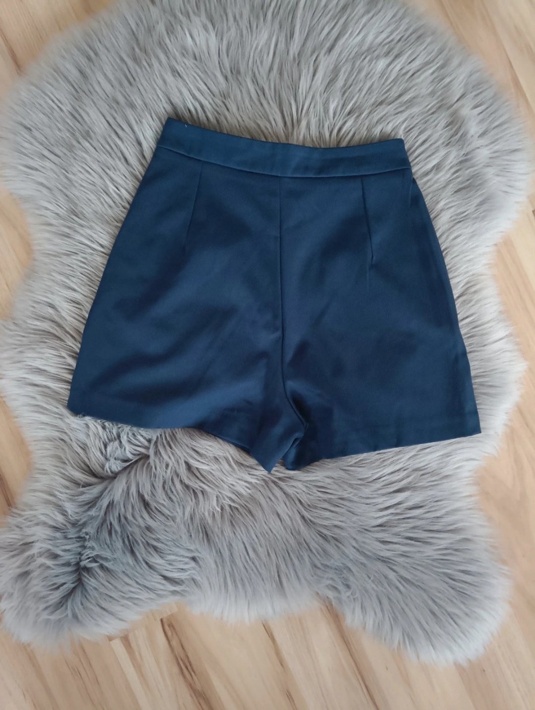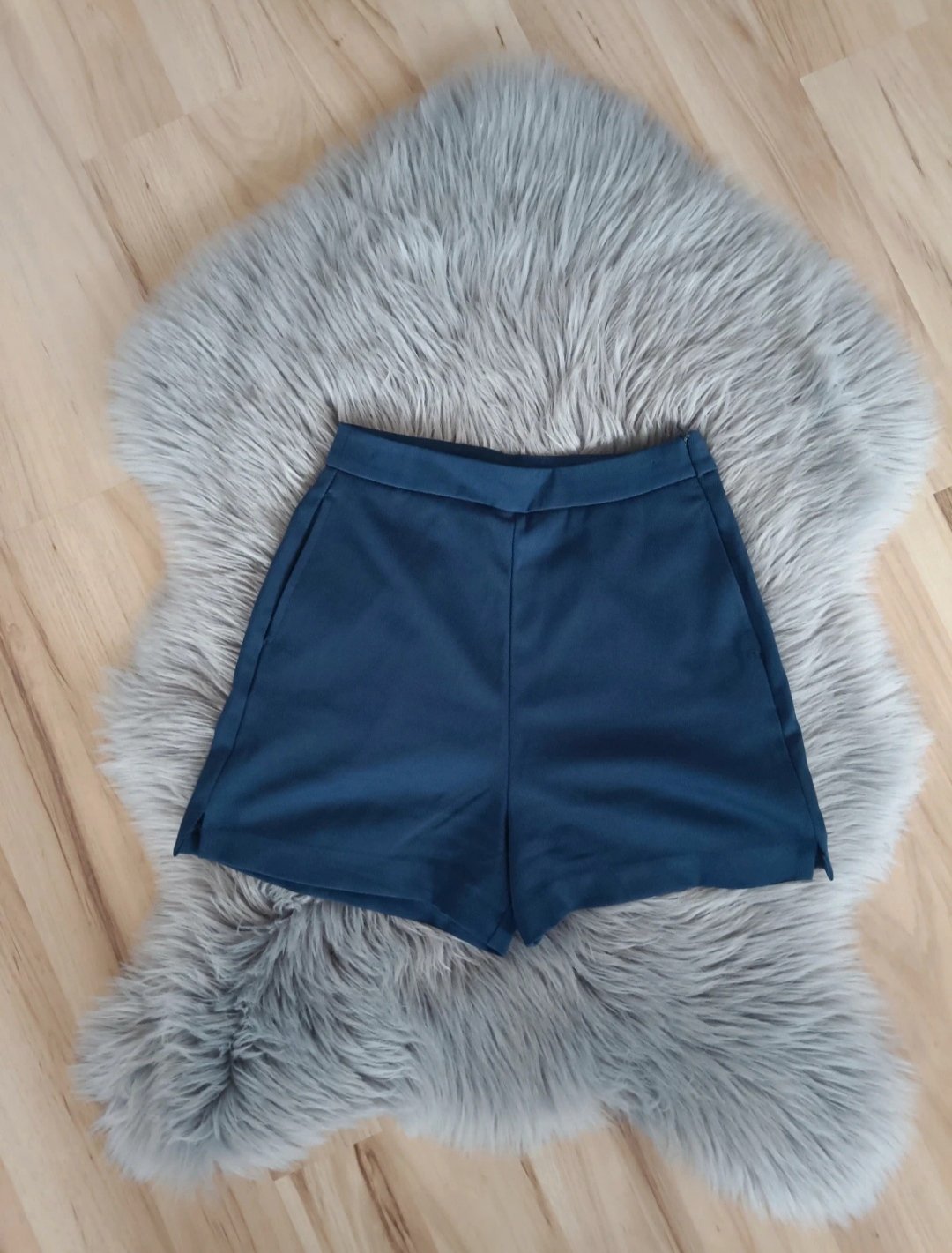 Super stav, oblecene minimálne 1-2x. Skvelý široký strih, oblecene vyzerajú ako minisukna. Krepovy materiál v pase ozdobená šnúrka. Majú vrecka. Kráľovská modrá farba. Mam k nej aj ladiace tricko ...