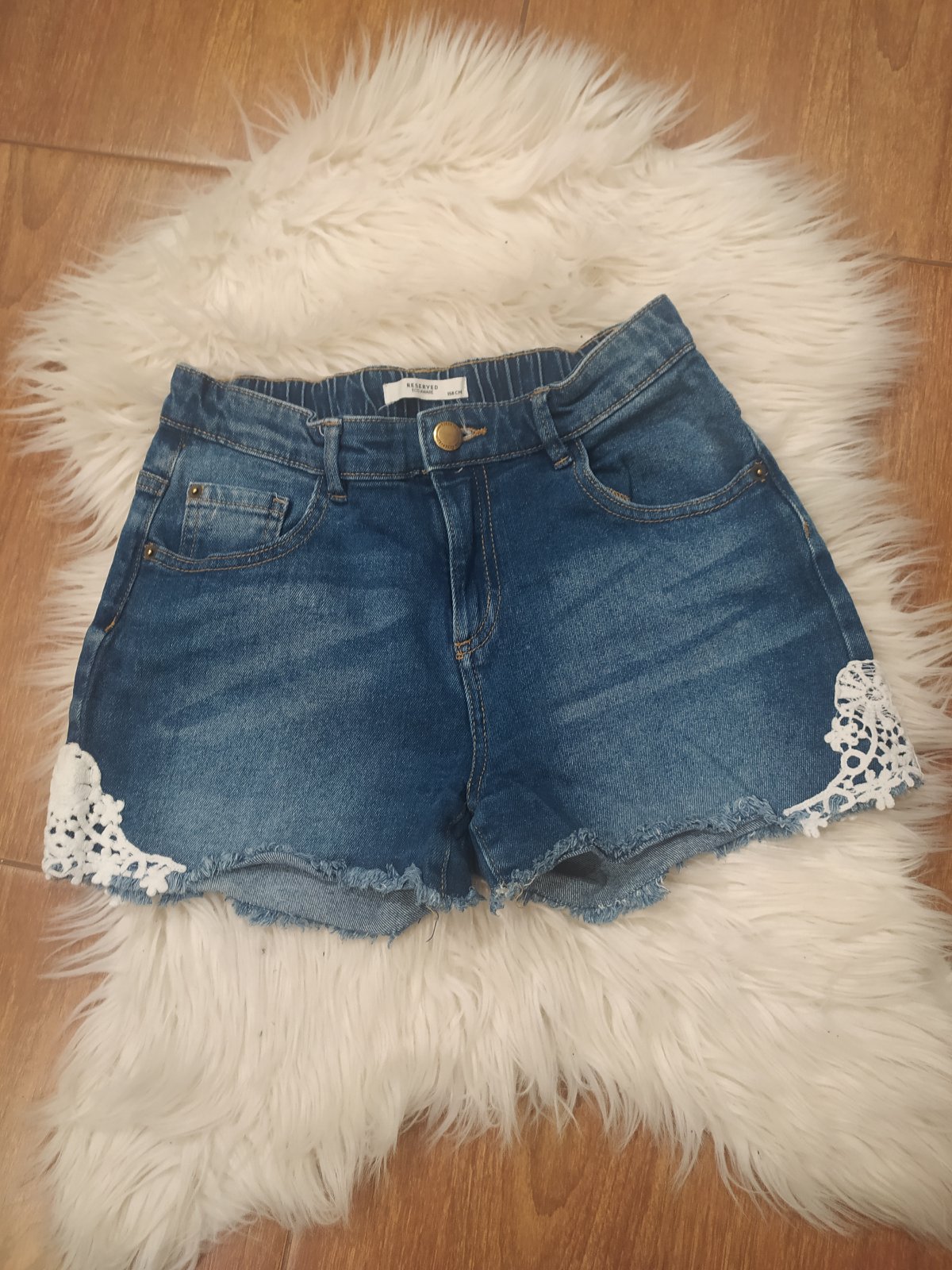 Krásne riflové šortky, doplnené krajkou.Nosene super stav