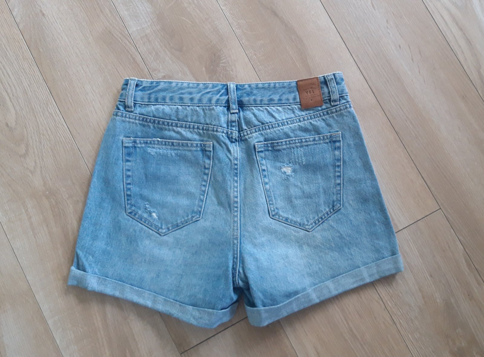 šortky s vysokým pásom, veľkosť 36, nosené veľmi málo, mierne zafarbenie, ktoré nie je veľmi vidieť
