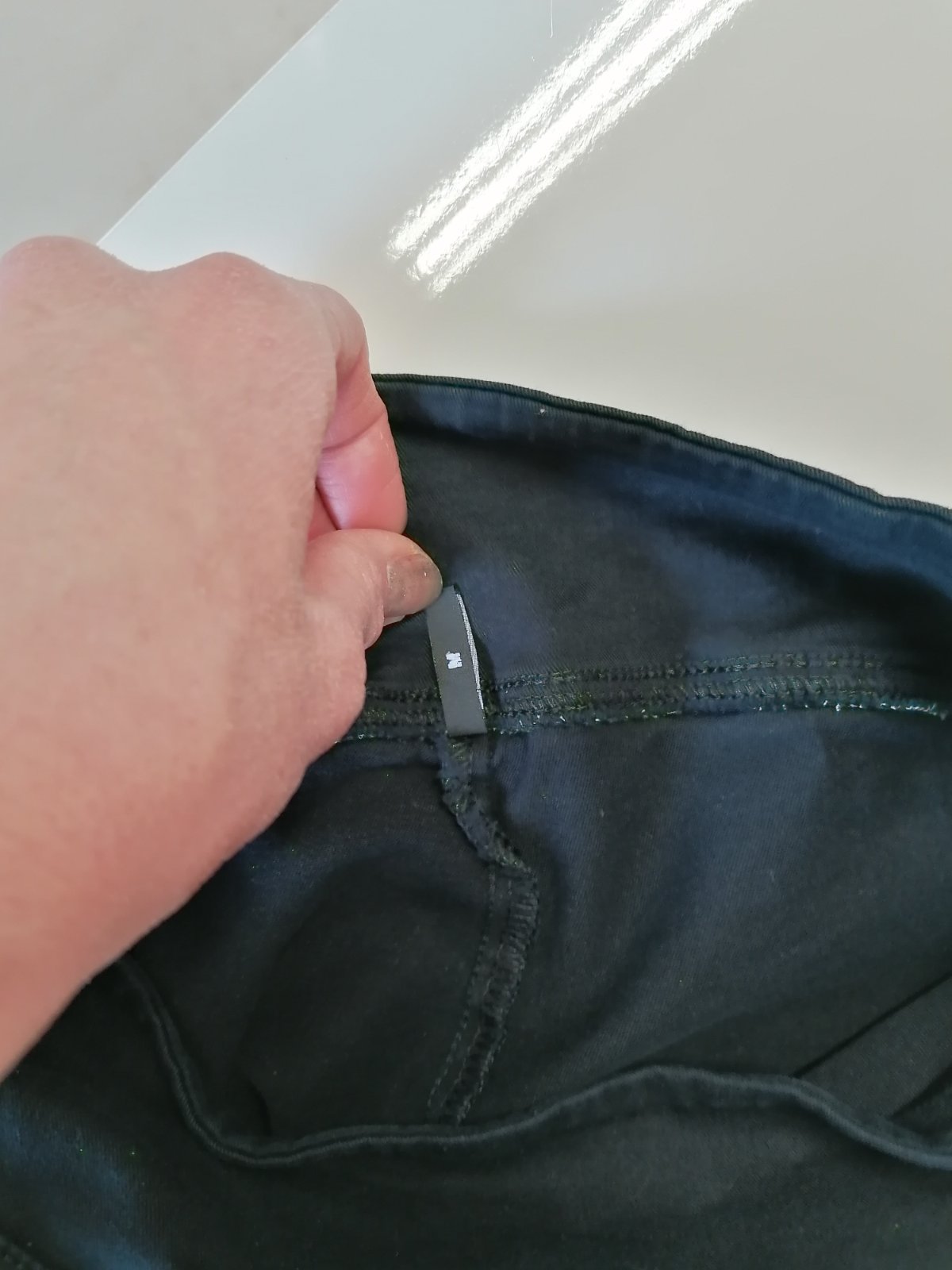 lesklý materiál,dole manžeta..pas 39cm..boky 42cm...dlžka 52cm...