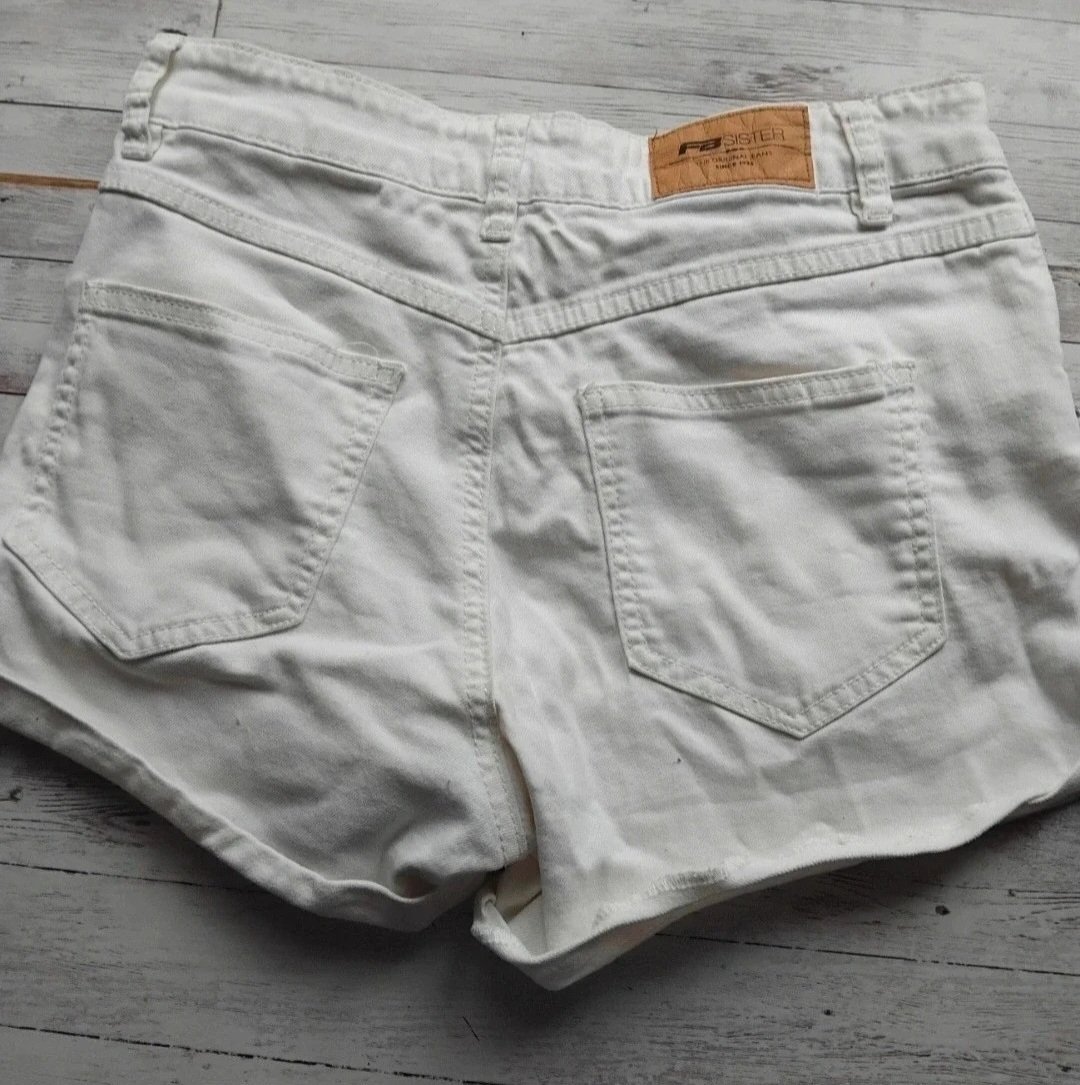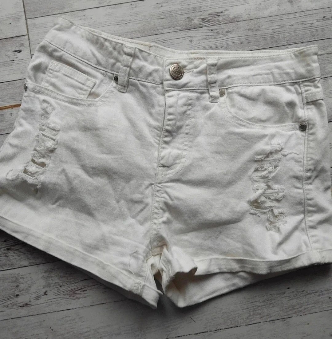 Kraťasy C&A biele, v predu aj vzadu vrecká, veľkosť píšu 36 - sedí pre dievčatá alebo ženy od XXS - po mnešie M ko. Boli zúžené v páse - záhyb, viď foto, dá sa opätovne rozšíriť, ak je potrebné. No...