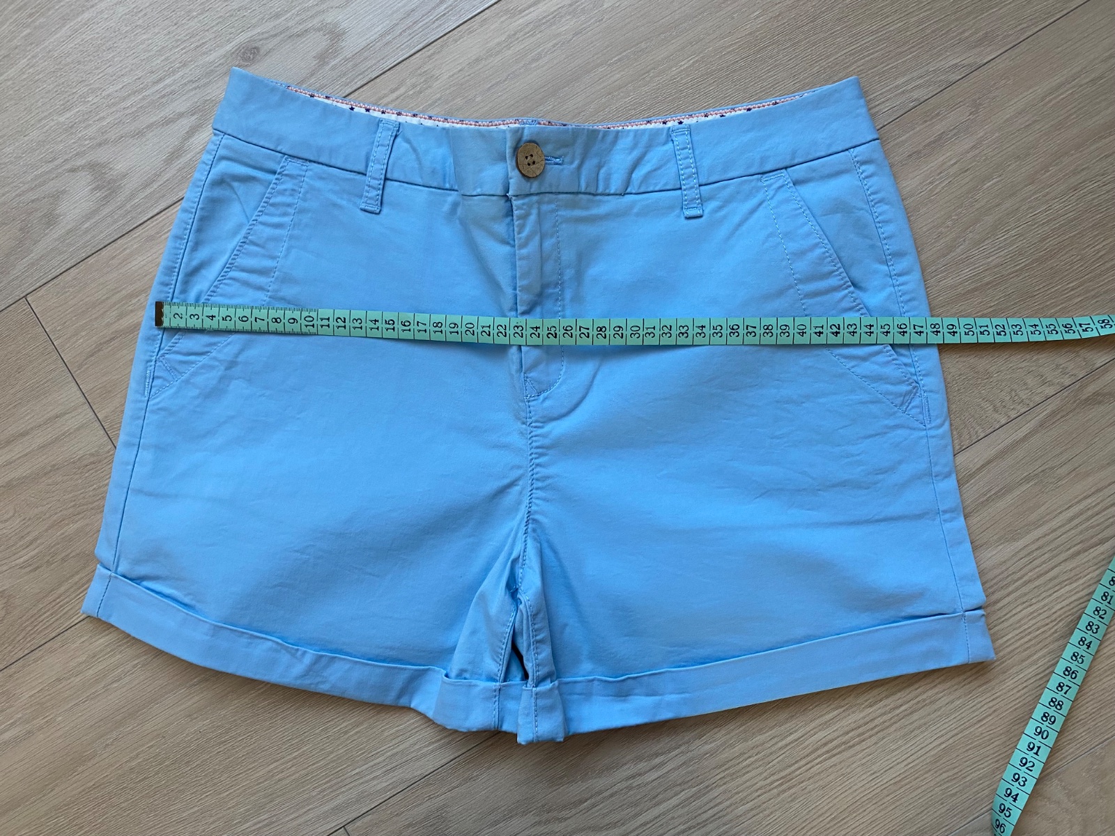 Rifľové kraťasy. Dĺžka 35 cm, obvod pása 80 cm.