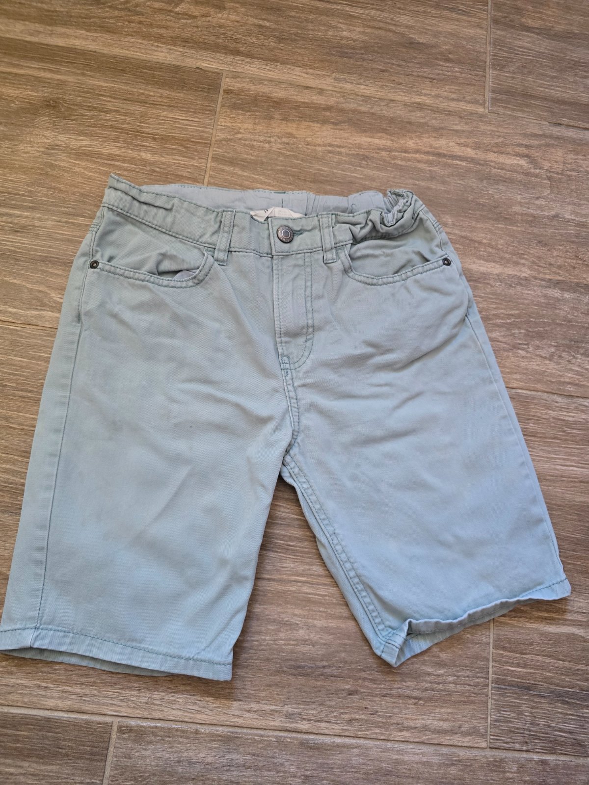 Rifĺové kraťasy tyrkysovej farby. Farba je sýtejšia ako na foto. Nohavice sú v top stave