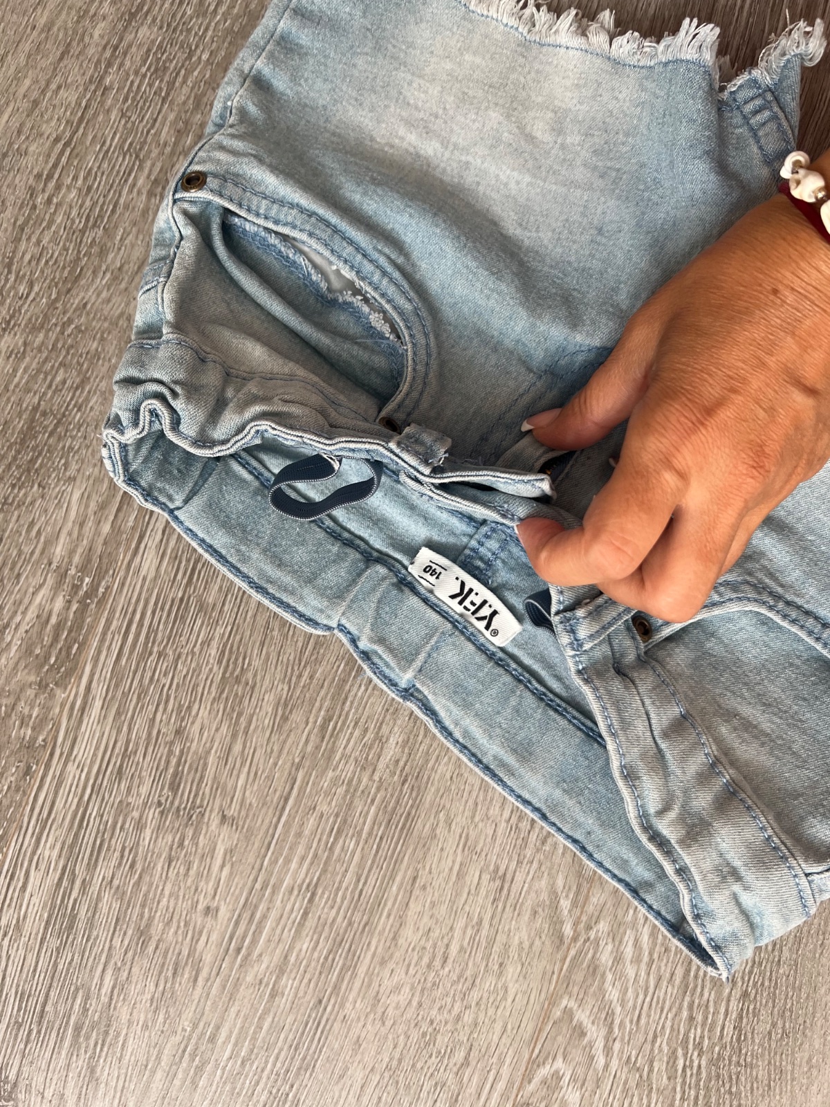 Štýlové kraťasky pre slečnu. Údaj o výrobcovi a veľkosti je už odstrihnutý, ale myslím, že sme kupovali v H&M, dcéra nosila ako veľkosť 140/146, v páse je posuvná gumička - v prípade záujmu premeri...