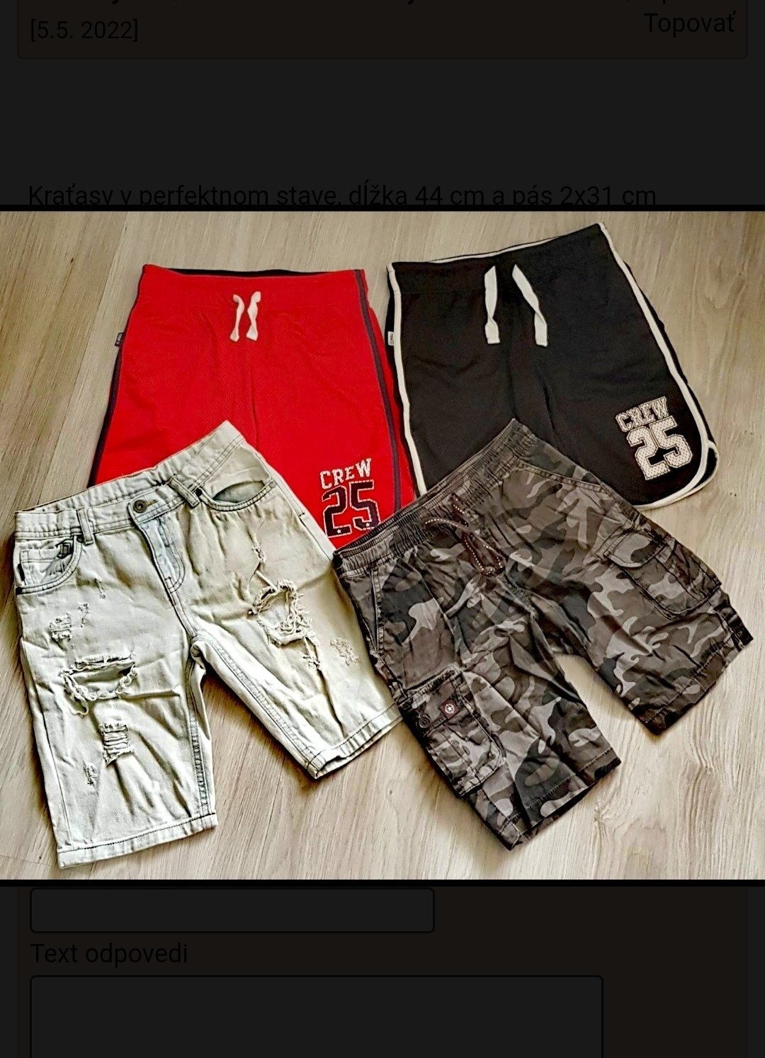 Kraťasy 140/146 - cena za všetky