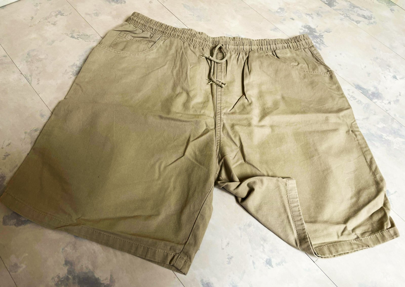 bavlnené pevné kraťasky,neznosené,vzadu vrecká a aj na boku,v páse šnúrka a gumička,veľmi dobre sa nosia,materiál bavlnený kepper
