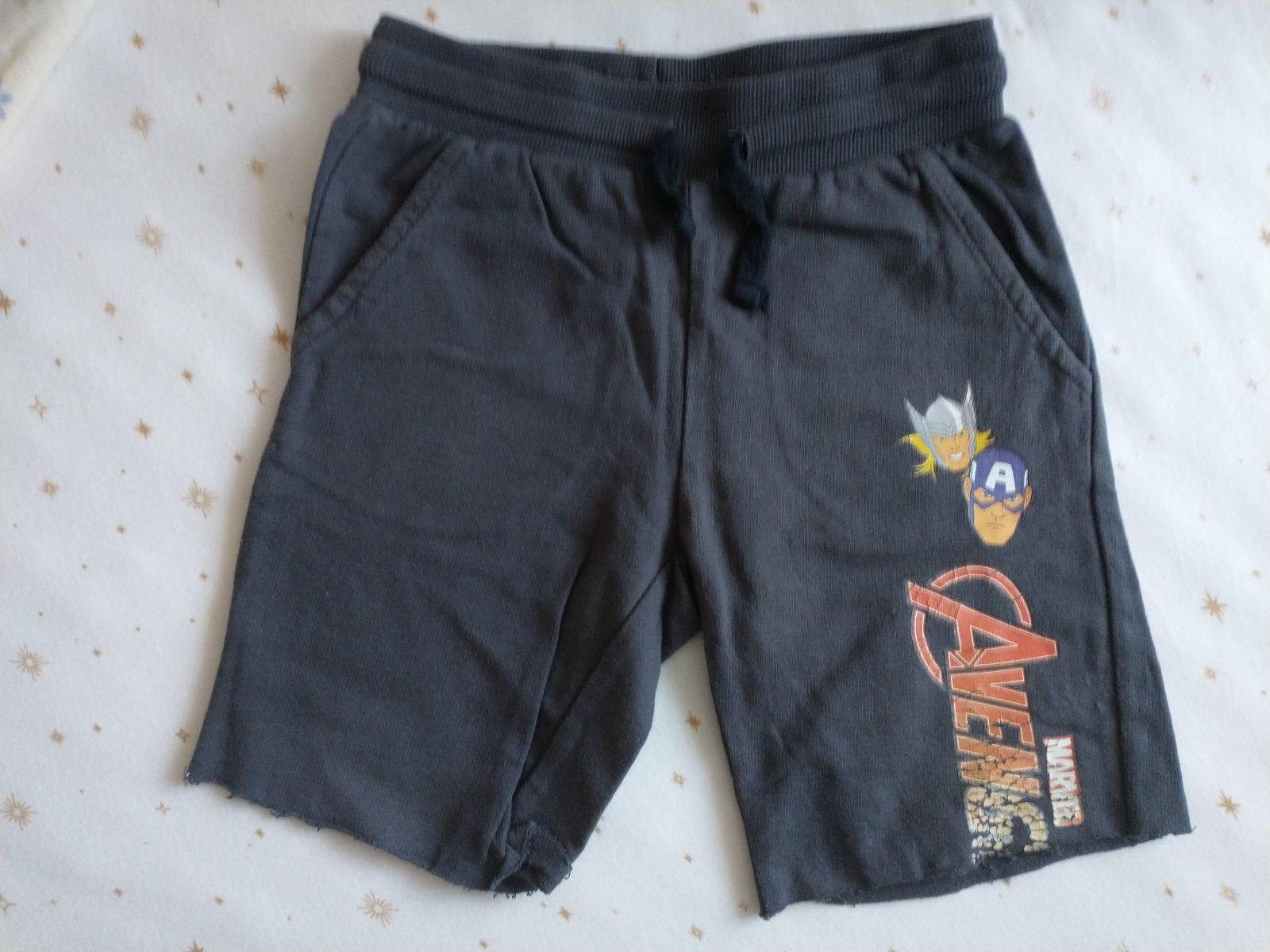 Kraťasy z teplákov, veľkosť 122, aplikácia na spodku sa olúpala