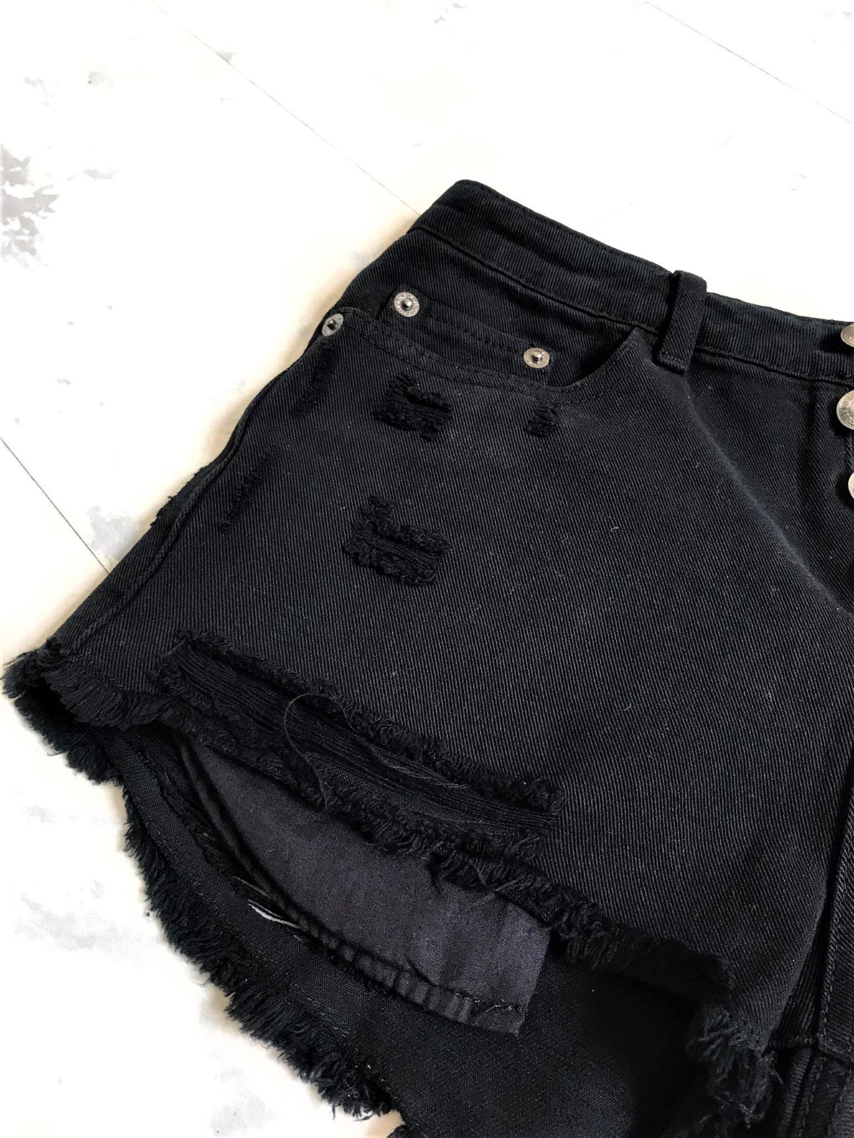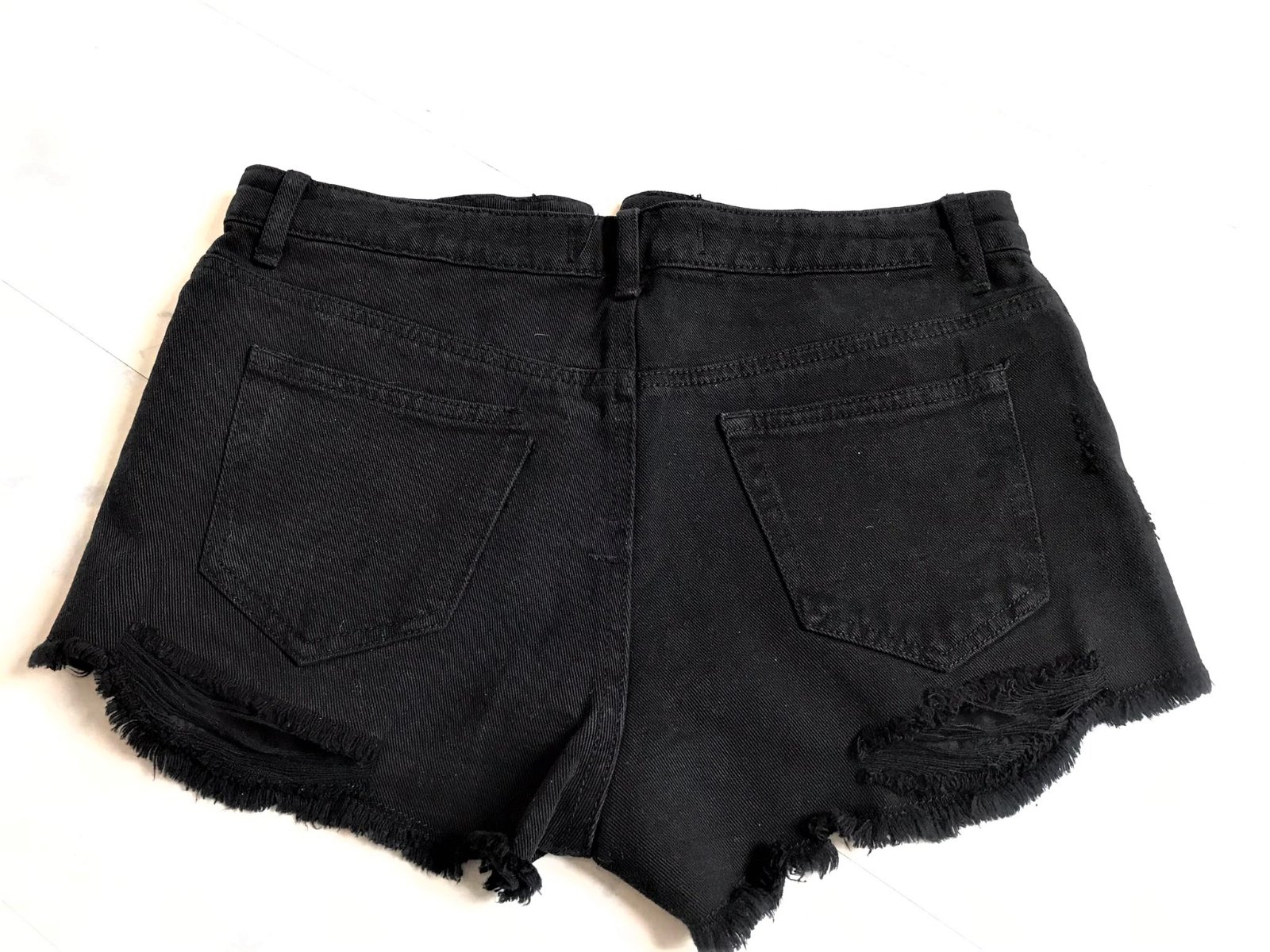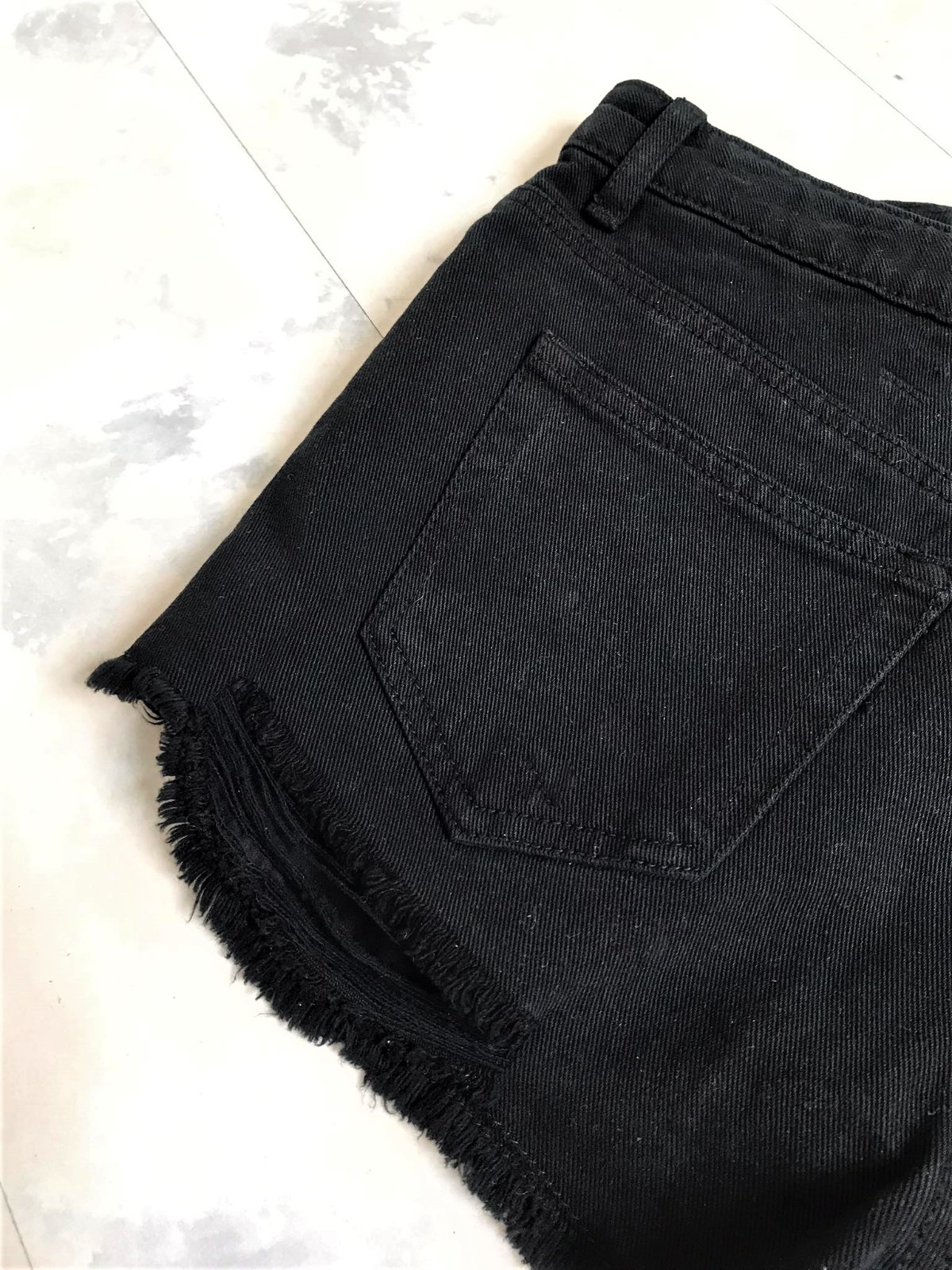 top stav,kvalitné a značkové,vzhľad odratých neukončených krátkych riflí,vpredu presahujú vrecká,sýto čierna farba,moderný vyšší sed,zapínanie na gombíky,pás = 37 -38 x 2 cm, boky = 45 - 47 x 2 cm,dlžka meraná na boku= 26 cm, predný sed = 26 cm, zadný sed = 38 cm,vyfotené s bleskom aby vynikli detaily....