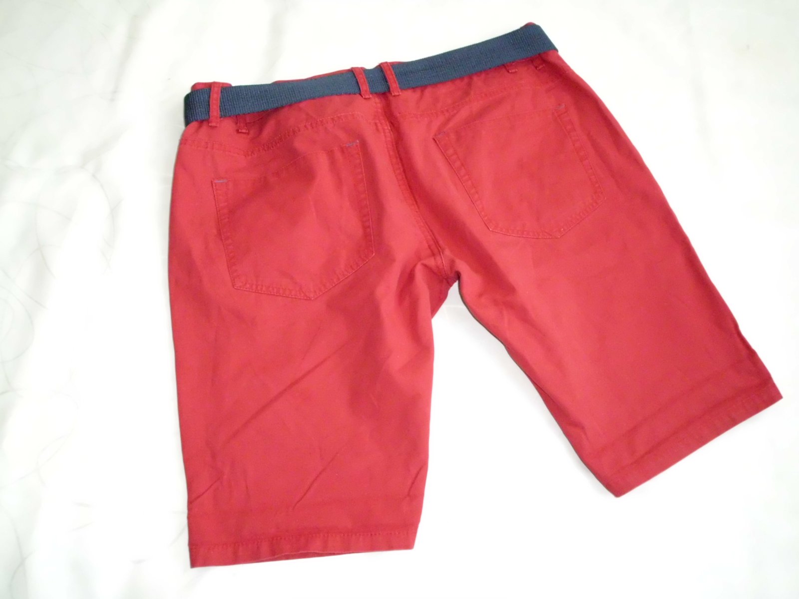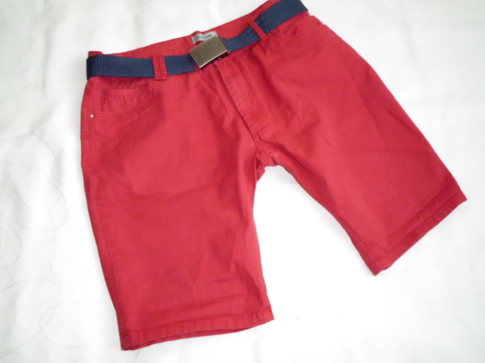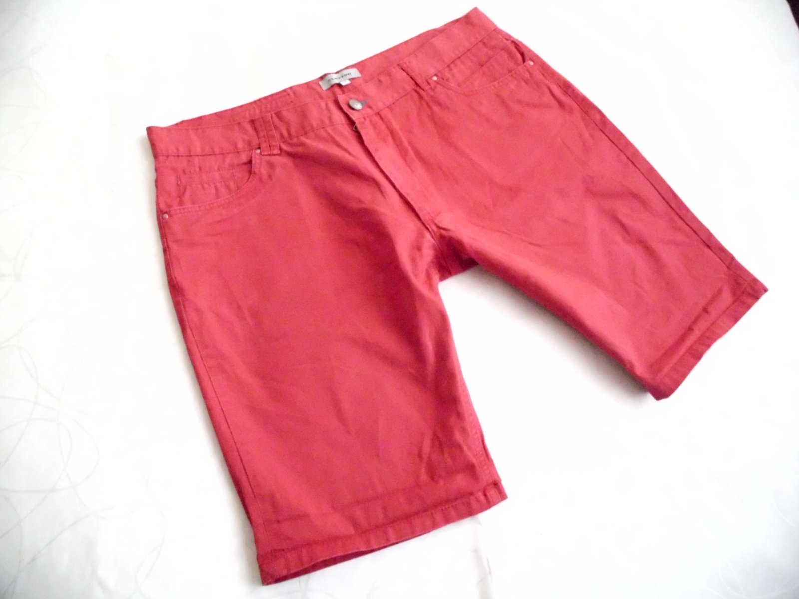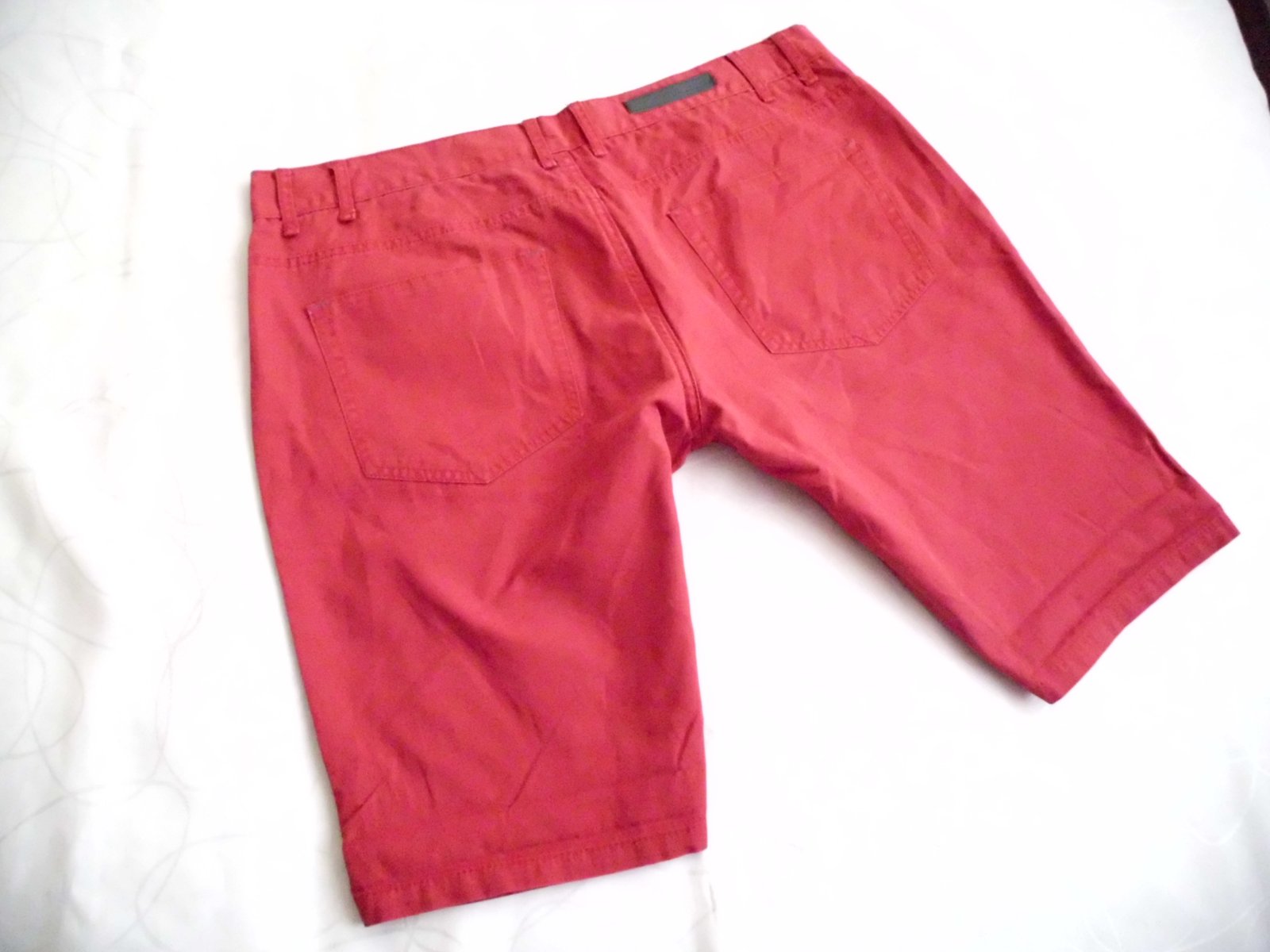 Predám pánske krátke nohavice Clayton v. L , pás 48 cm, predný sed 26 cm, dĺžka 52 cm, šírka-spodok nohavice 23 cm, 6 vreciek, príjemný materiál , pekná červená farba, 100% stav