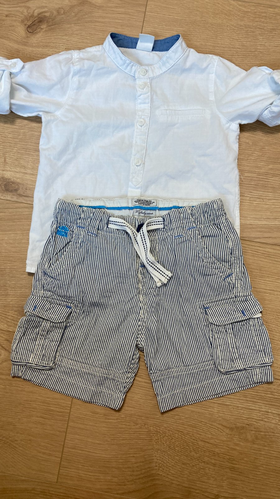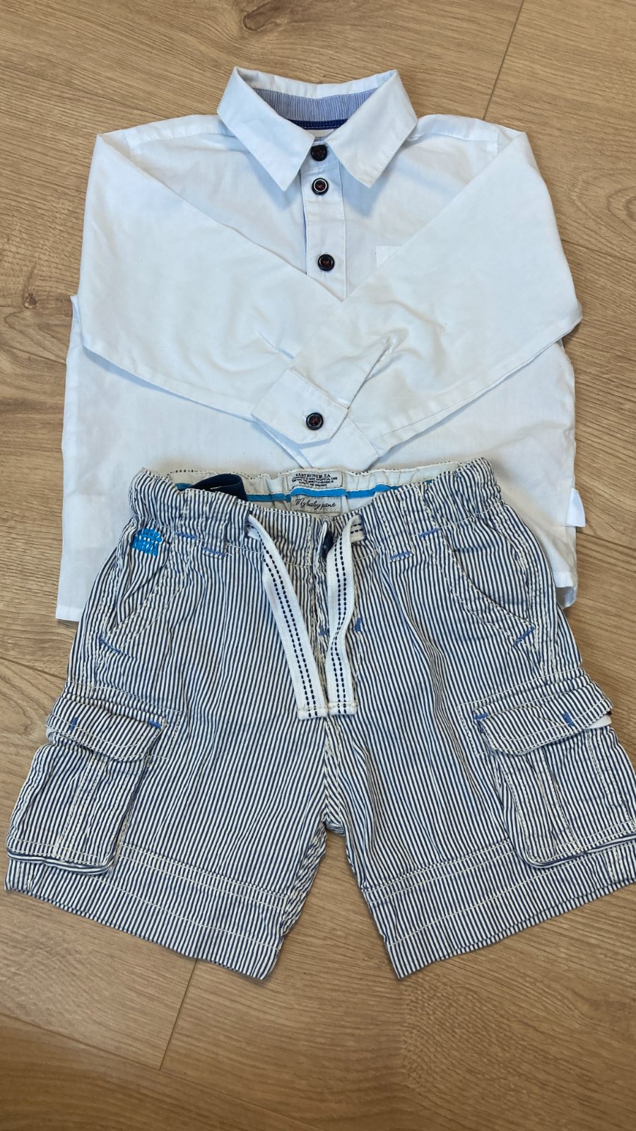 V ponuke mám aj 2 biele košele, ktoré syn nosil spolu s kraťasmi.
