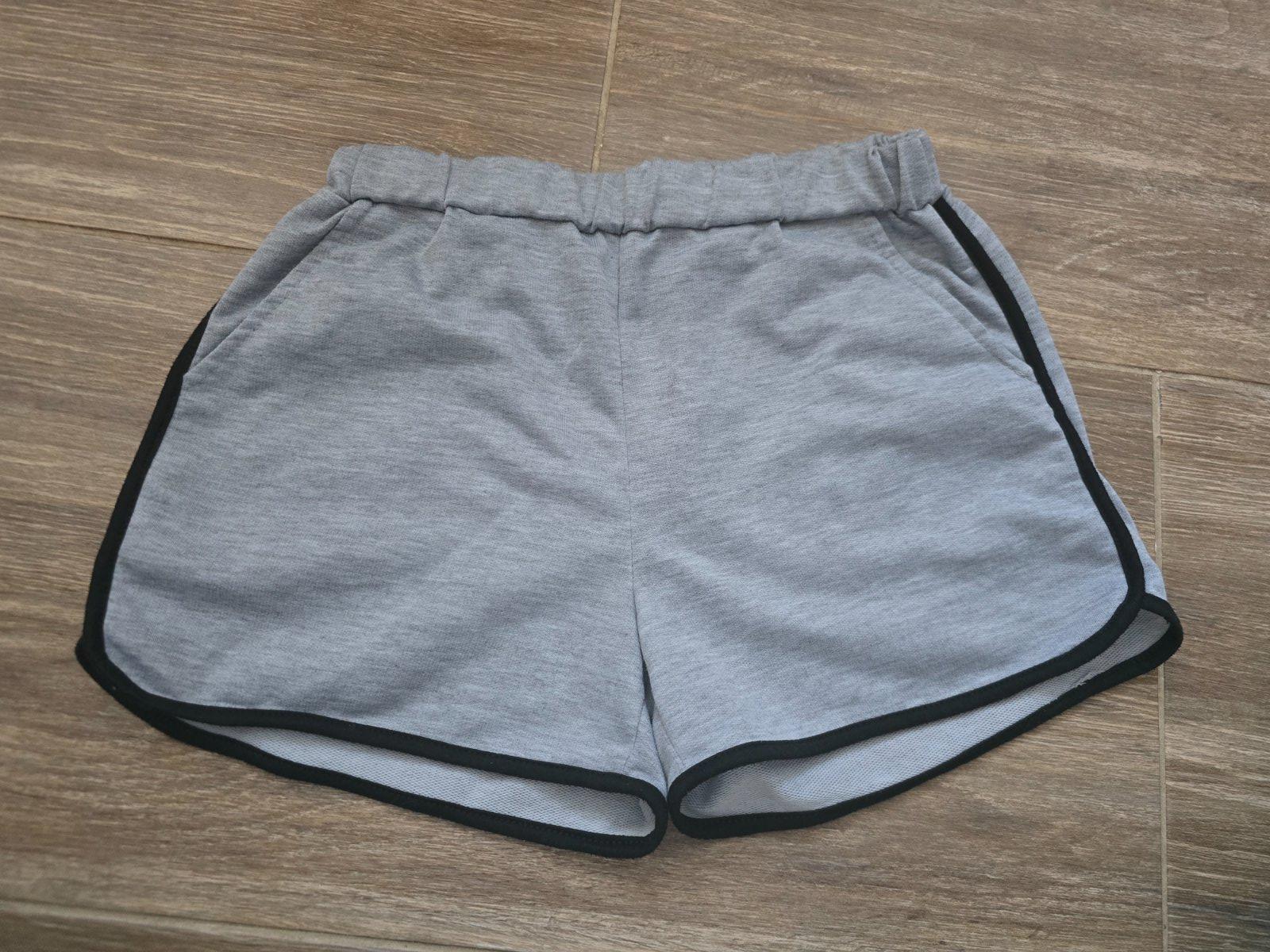 Pekne šortky na traky par krat oblečene ,pise velkost M ale su menšie ,traky sa nastavuju ,dlžka od pasa 33cm ,v pase je šnurka na stiahnutie,v zadu na nohe je malinka dierka nieje ju vidiet inak ž...