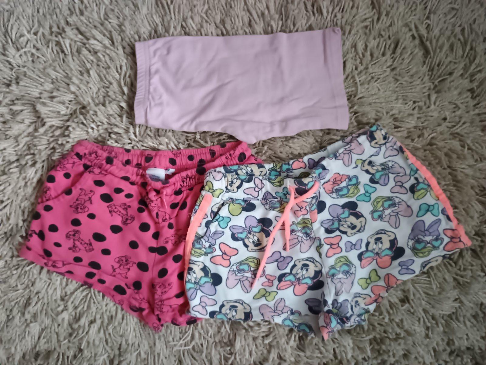 Dvoje krátke nohavice ružovej farby. Veľkosť 134, ale skôr sedia na 122, dĺžka od pása po rozkrok je 21 cm, pás 25 cm, nedá sa regulovať, šnúrky sú len na okrasu. Kraťasky boli oblečené len raz. Ce...