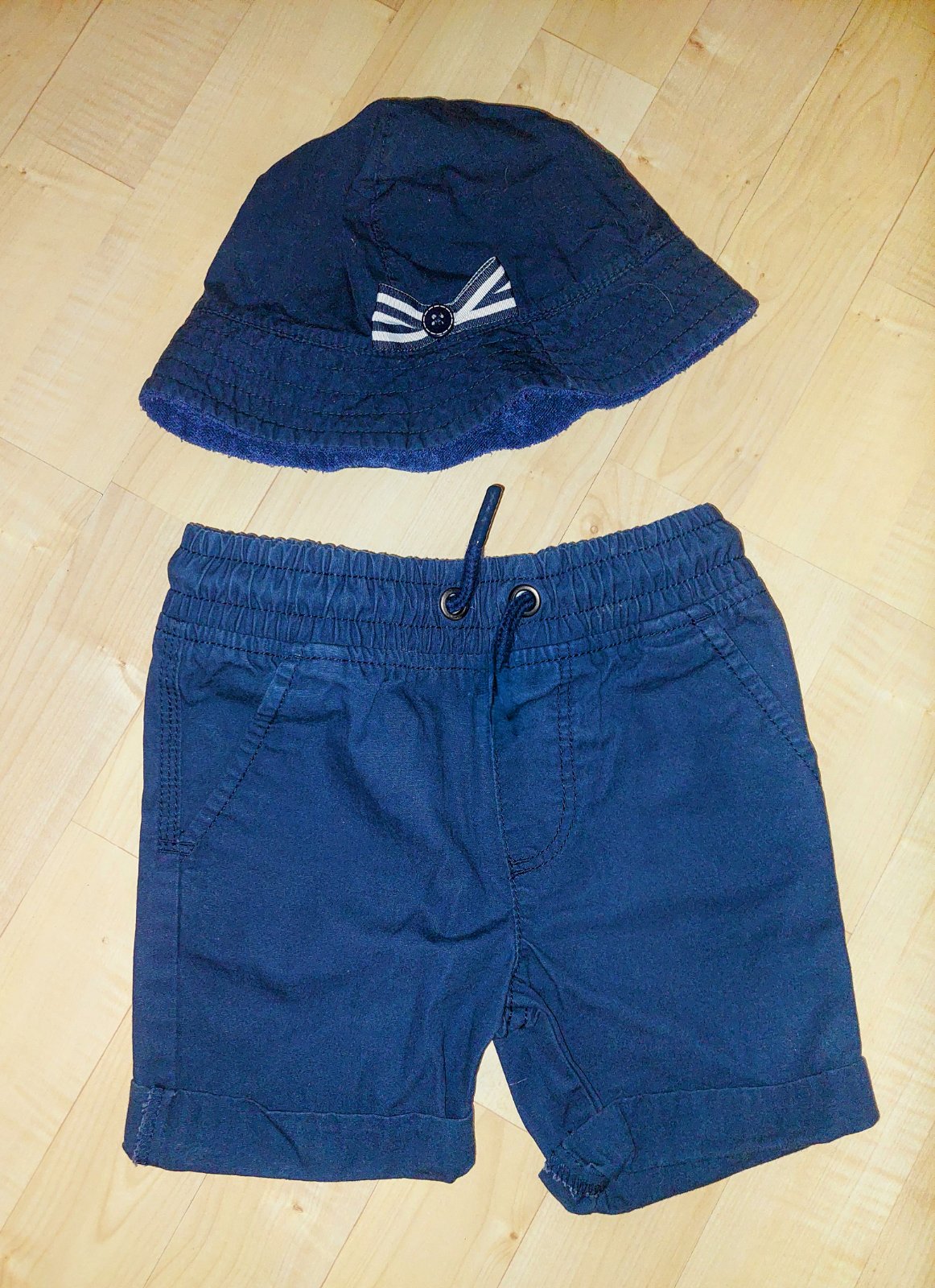 Velmi pekne kratasky, tmavomodre a bledo modré , vo veľmi dobrom stave, šedé leginky krátke k tomu gratis