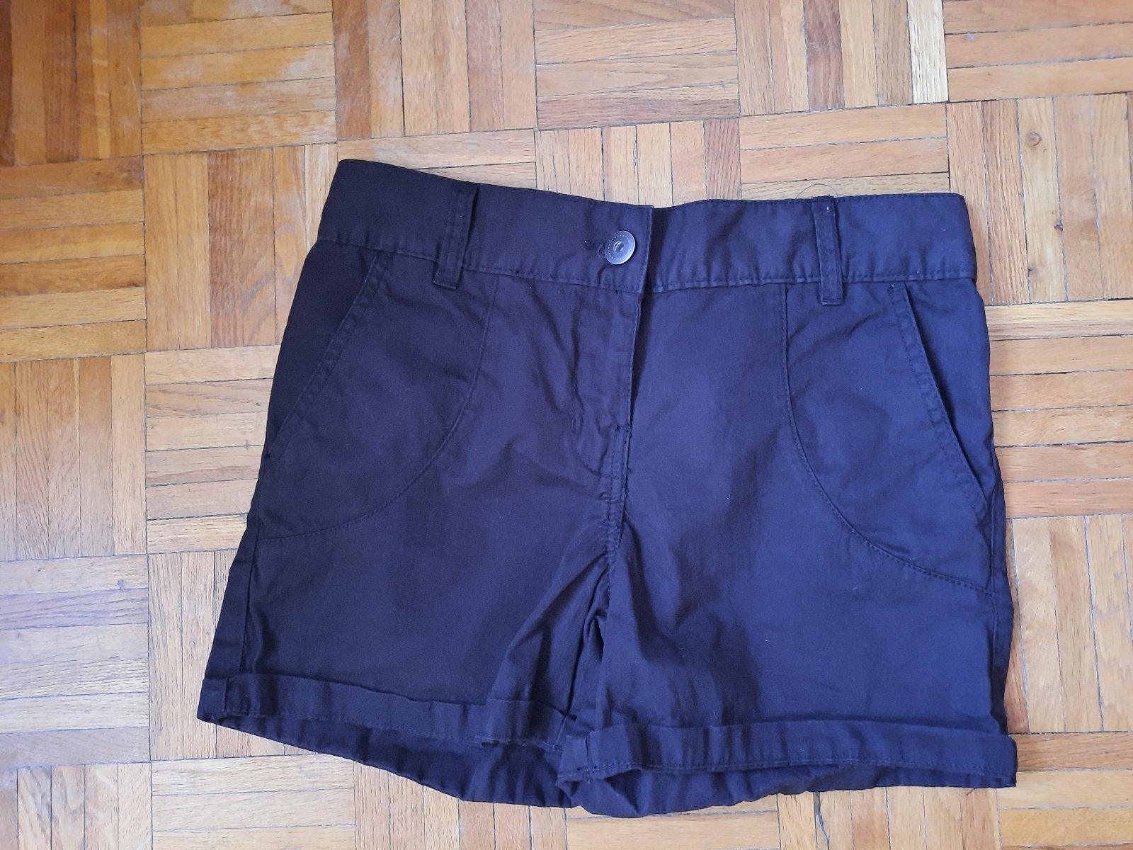 Predám veľmi pekné a pohodlné čierne šortky. Vpredu aj vzadu sú 2 vačky, v páse vzadu je guma- tak sa dobre prispôsobí.