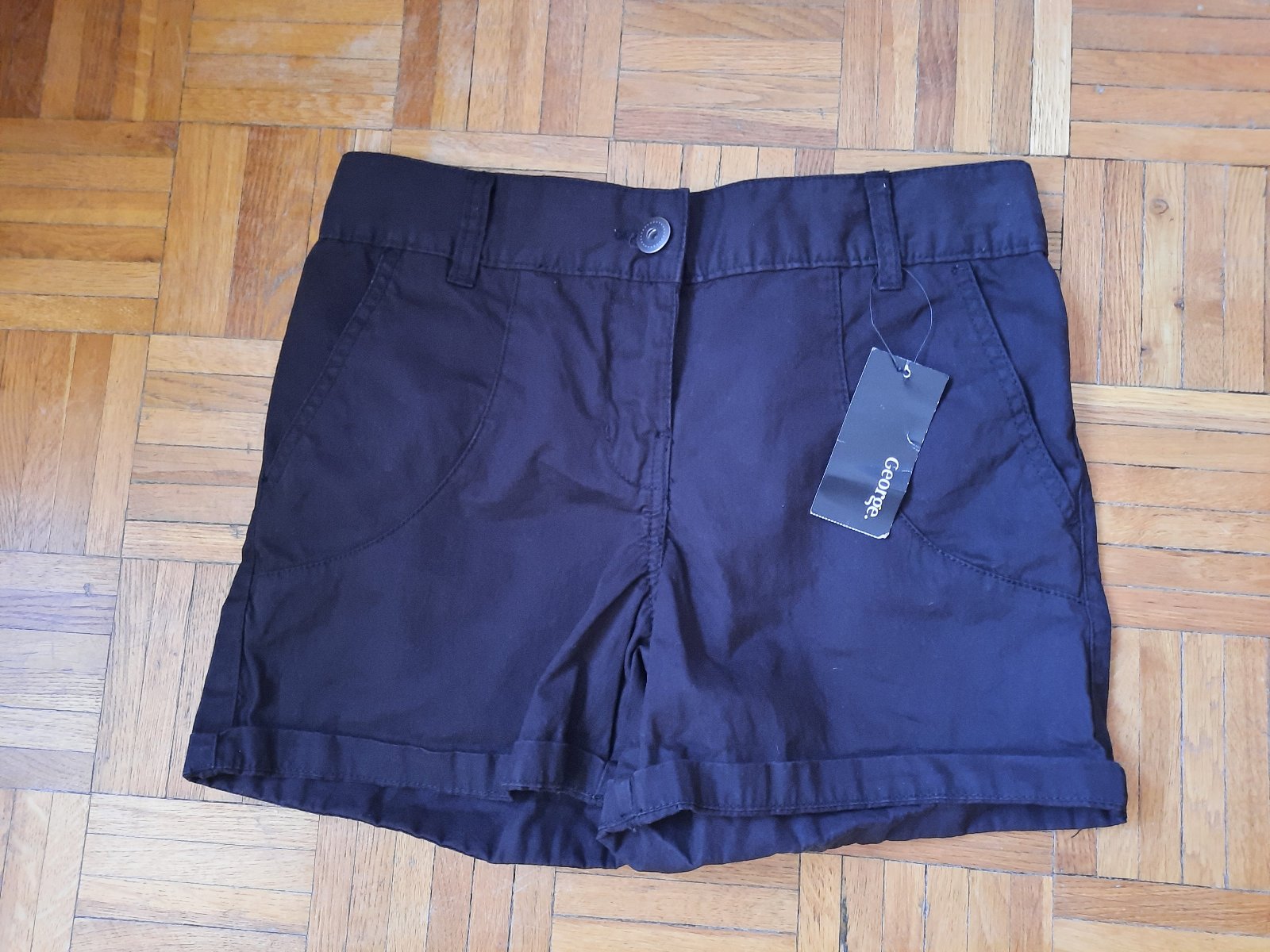 Čierne riflové šortky s vysokým pásom, s vreckami. Pás 38 cm, dĺžka 35 cm, predný sed 26 cm.