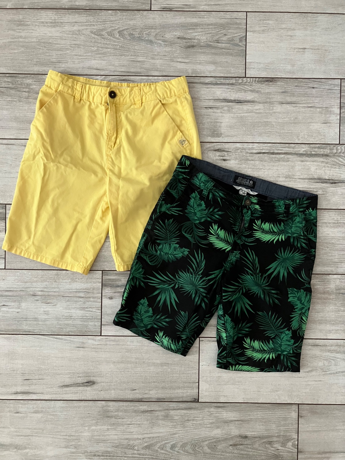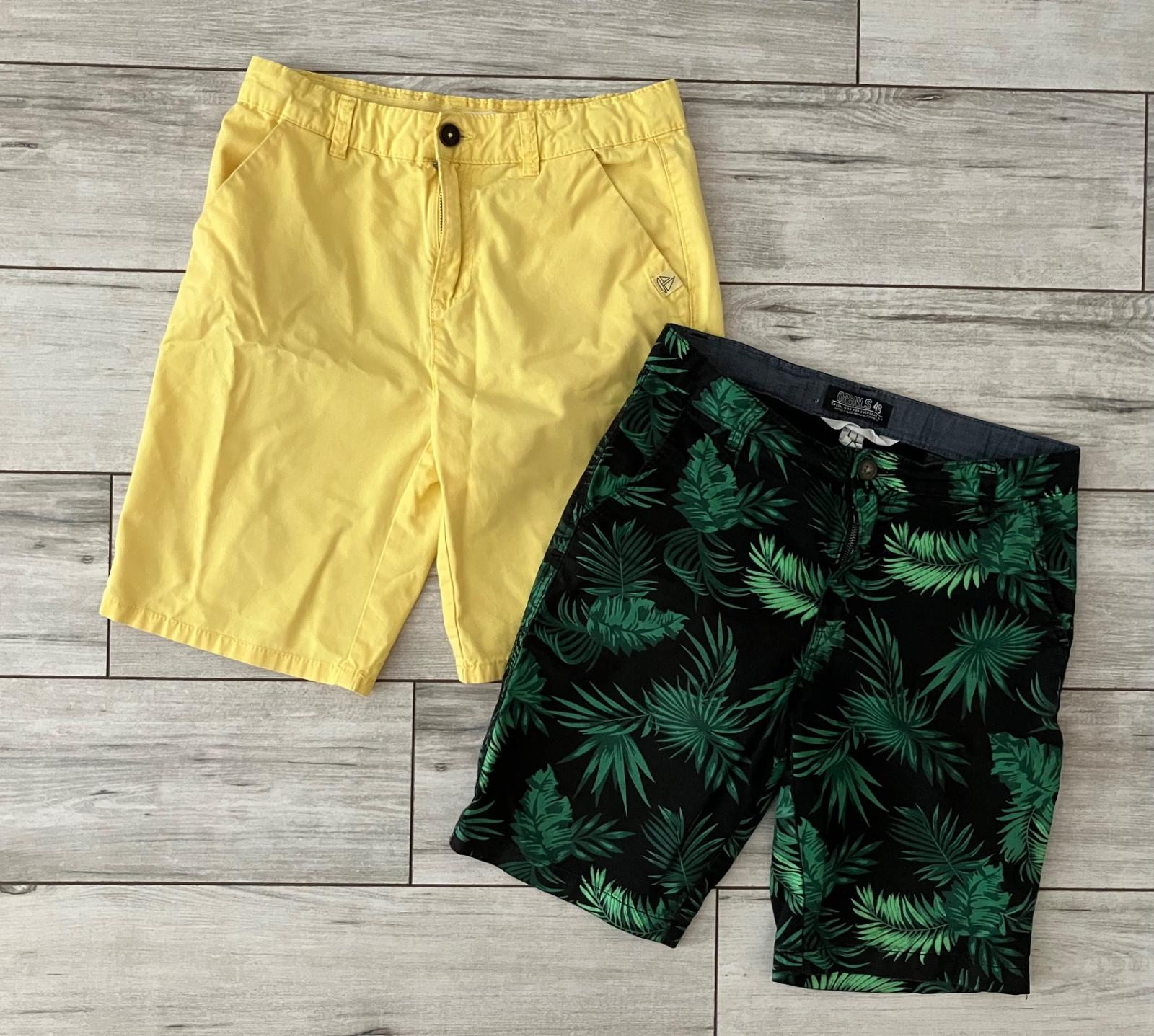 Kraťasy, vel.152, 100 % bavlna, tenke, bez poskodeni, oblecene len 2x, asi 2cm rozdiel v dlzke, vid foto, pri noseni to nevidiet..
