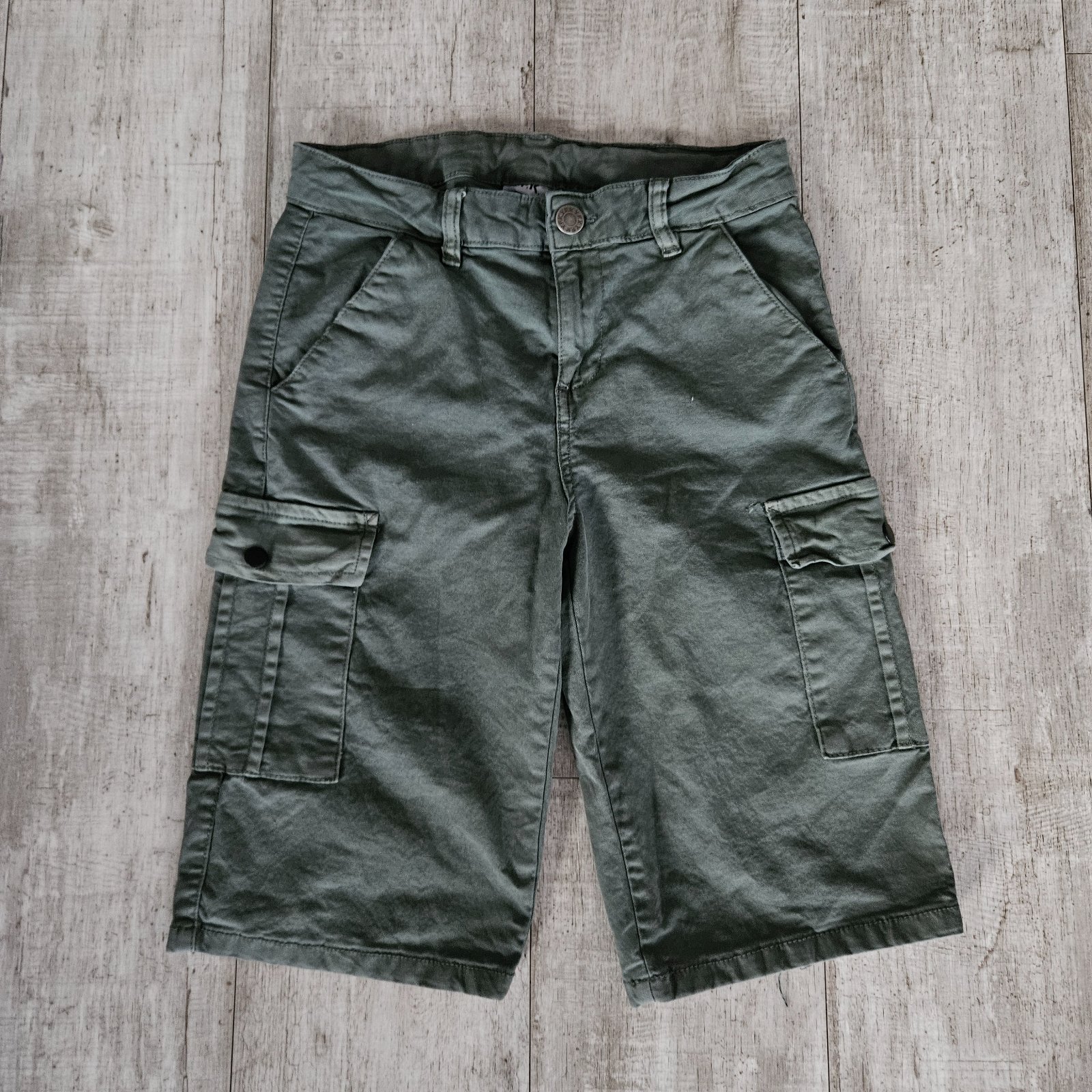 Písaná veľkosť 158/164 Bočná dĺžka 55cm, vnútorná dĺžka 32cm, pás v kľude 32cm, natiahneme na 41cm, boky 46cm Oblečené párkrát Kus 3€