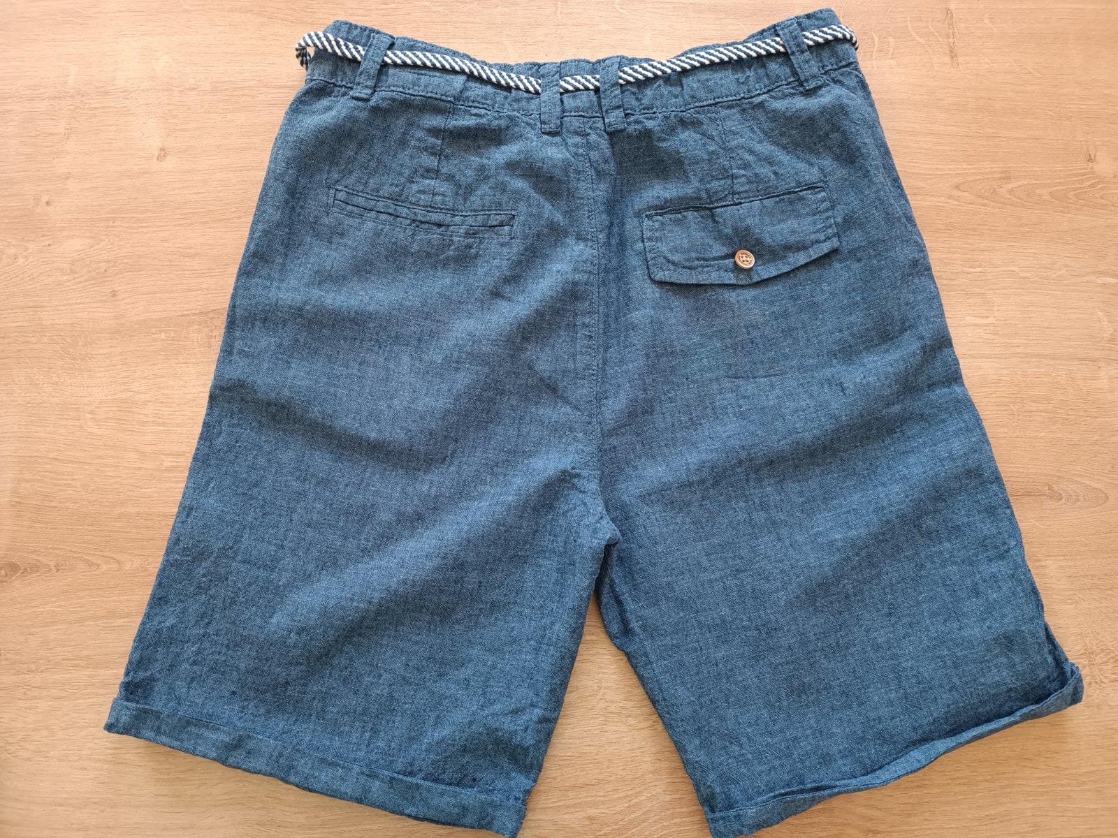 Predám kraťasy v 58 po mojom synovi v dobrom stave, bez poškodenia. Zložené zo 100%bavlny. Zapínanie majú na zips a gombik. Rozmery.: šírka pasu 35cm, dĺžka 43cm, od rozkroku 19cm.