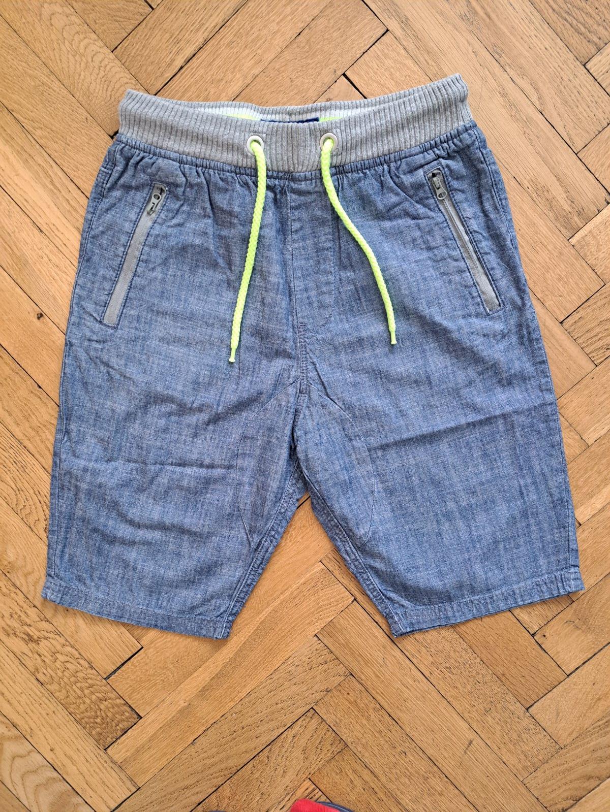 Perfektné kraťasy volné a vzdušné na leto pre chlapcon značka Next č. 152 na 11-12 rokov. Super stav, tenká plátená látka, ľahučká. Vrecká na zips, pás sa dá sťahovať snúrkou. Pás 33 cm, dĺžka na boku 49 cm, dĺžka od rozkroku 22 cm.