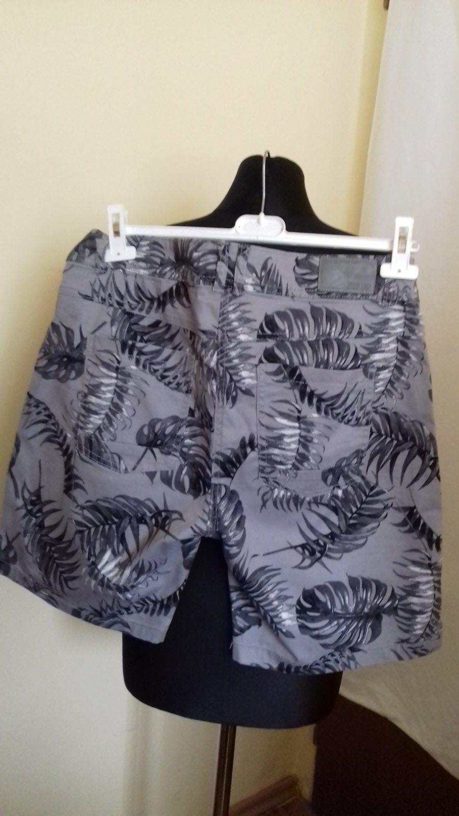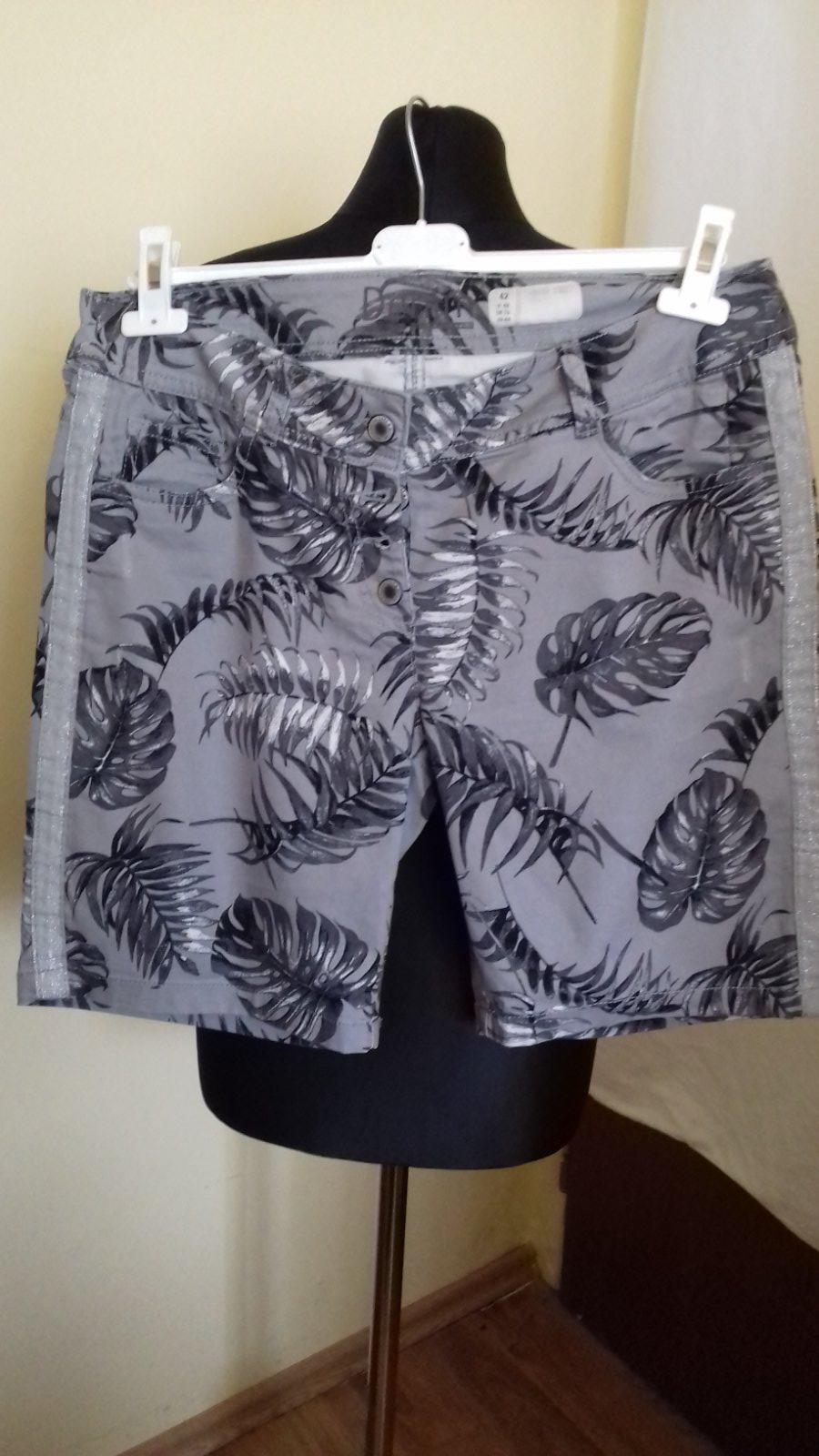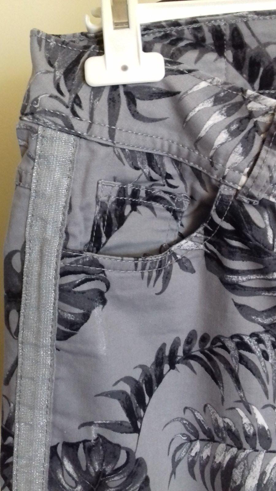 Pekné krátke nohavice , dobrej značky, aj kvality. je to 97% bavlna, 3% elastan. Dl.pozdĺž boku je 45cm aj s pásom, vnútorná dl. je 20 cm, dl. sedu je 42 aj s pásom, vpredu, cez zapínanie je 23cm aj s pásom. šírka pásu je 45X2 cm, šírka okolo stehna je 26X2 cm. Pozdĺž boku je prišitá ozdobná do strieborna ladená pasovka. Nohavice sú v perfektnom stave, bez známok nosenia.