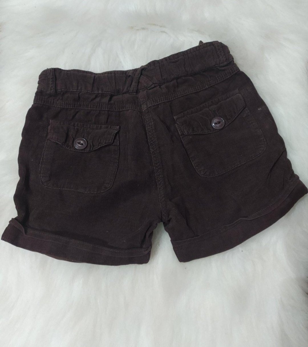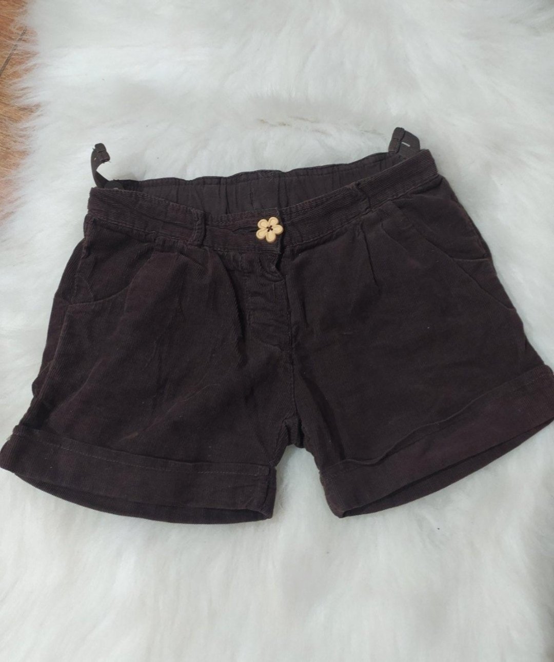 Kraťasy hnedej farby s opaskom ( šatka ) veľkosť 3-4 roky nosené . cena s poštovou 2.tr.obyč.