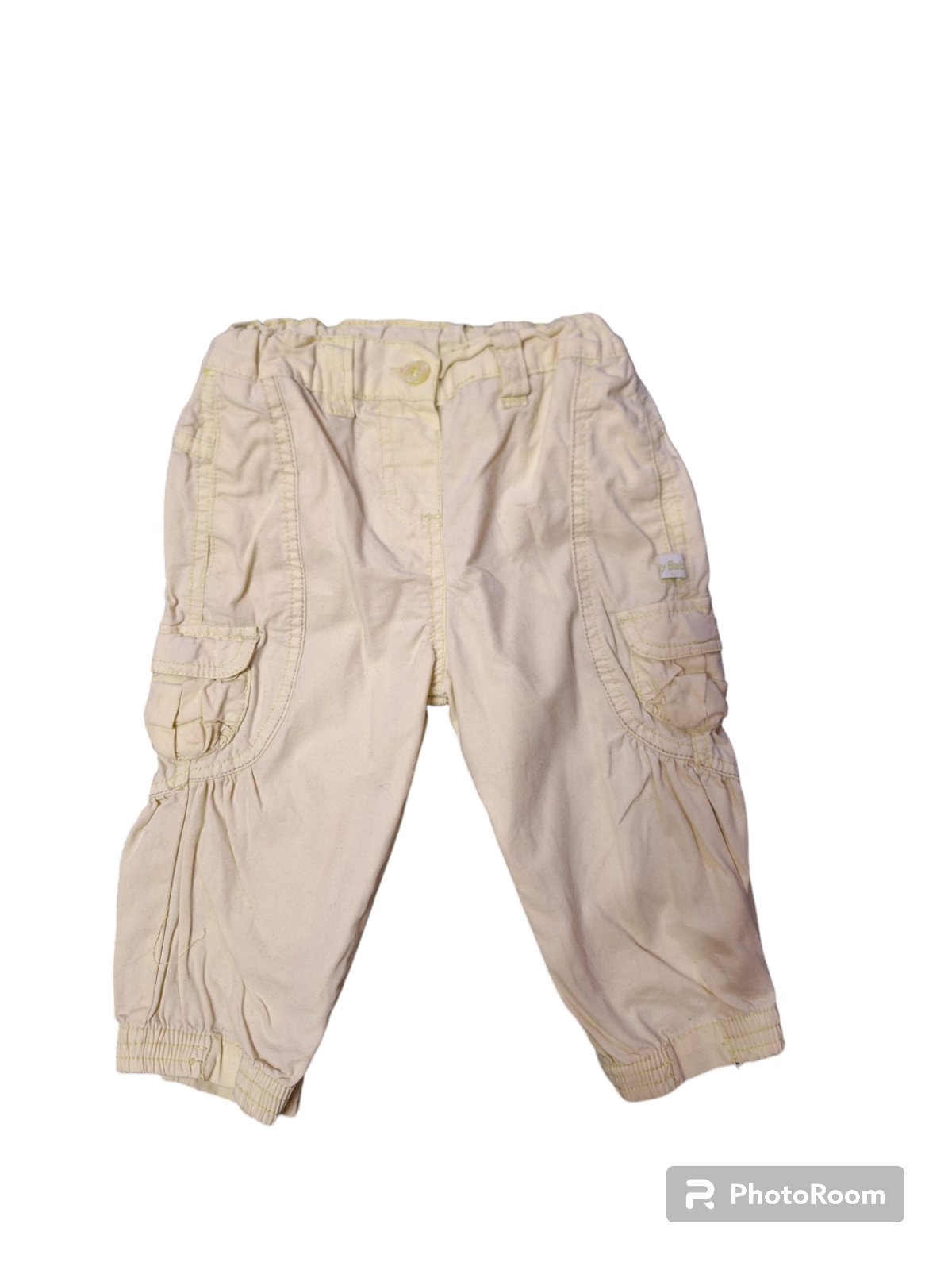 Dievčenské bavlnené trištvrťáky. Zapínanie je vpredu na gombík. V páse vzadu a po bokoch je guma. Dĺžka je 45cm,obvod pása v kľude je 50cm,natiahnuté 60cm. kód 92A