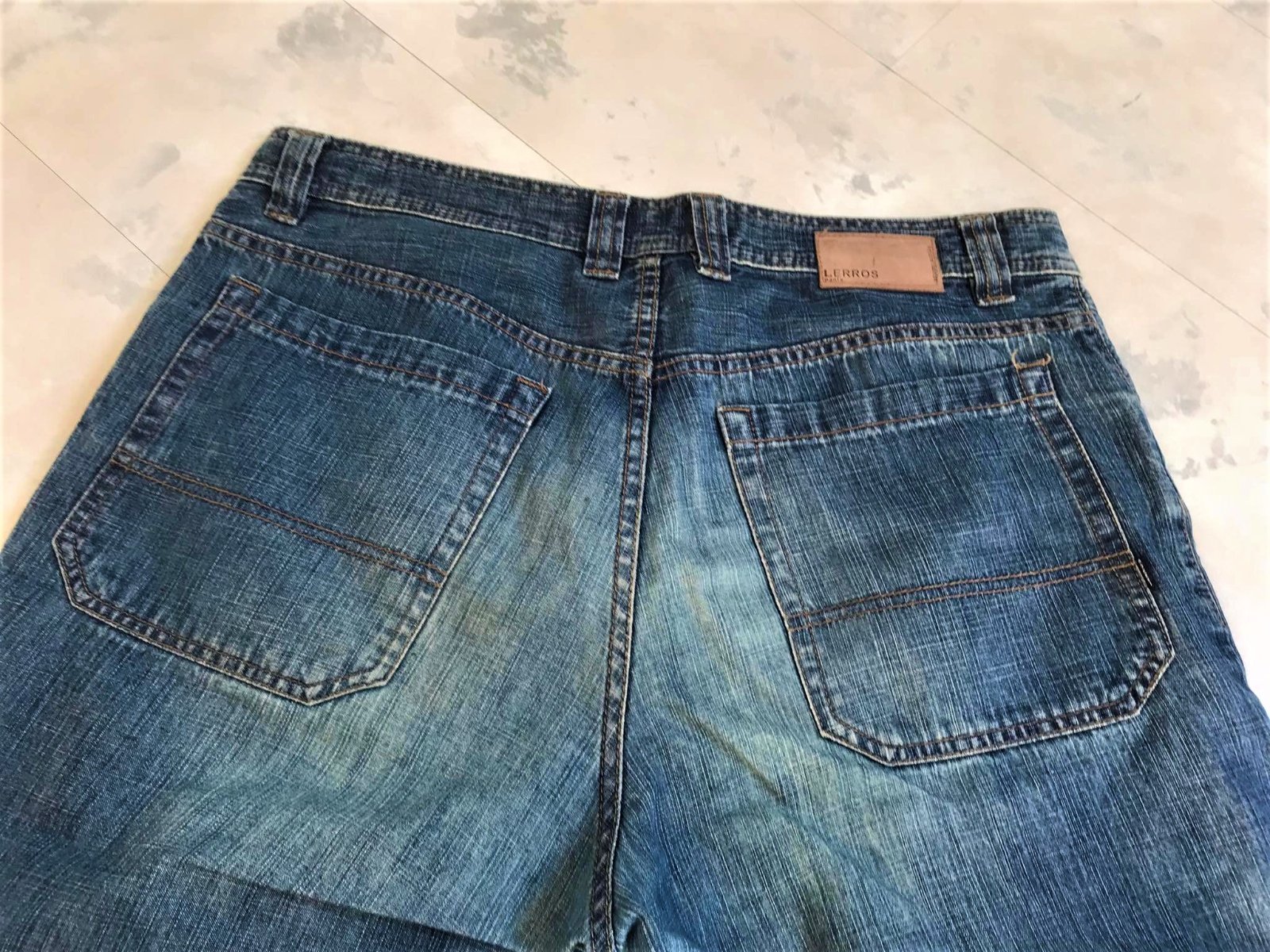 výborne sediace bermudy,tenká riflovina,pás = 49 - 50 x 2 cm,dlžka = 80 cm,pri vrecku jemné prešúchanie,nie však diera,ale upozorňujem ( posl.obrázok ) - v reále to nie je tak vidno &