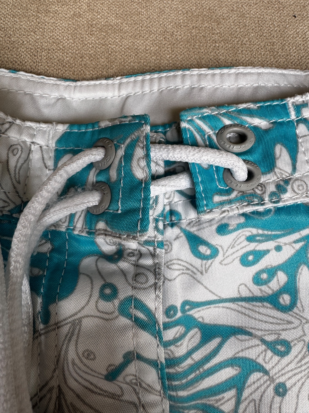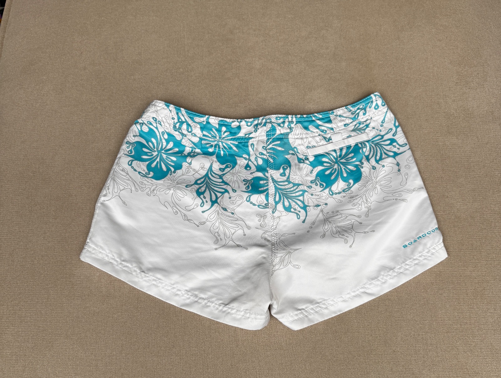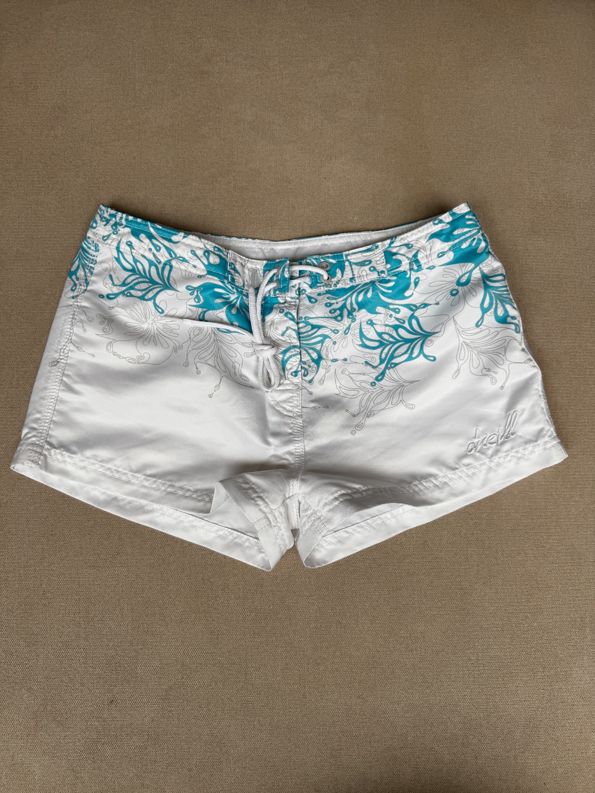 Predám dámske kraťasy značky O’Neill v krásnej bielej farbe s jemným tyrkysovým vzorom. Ideálne na leto, k vode alebo na dovolenku.