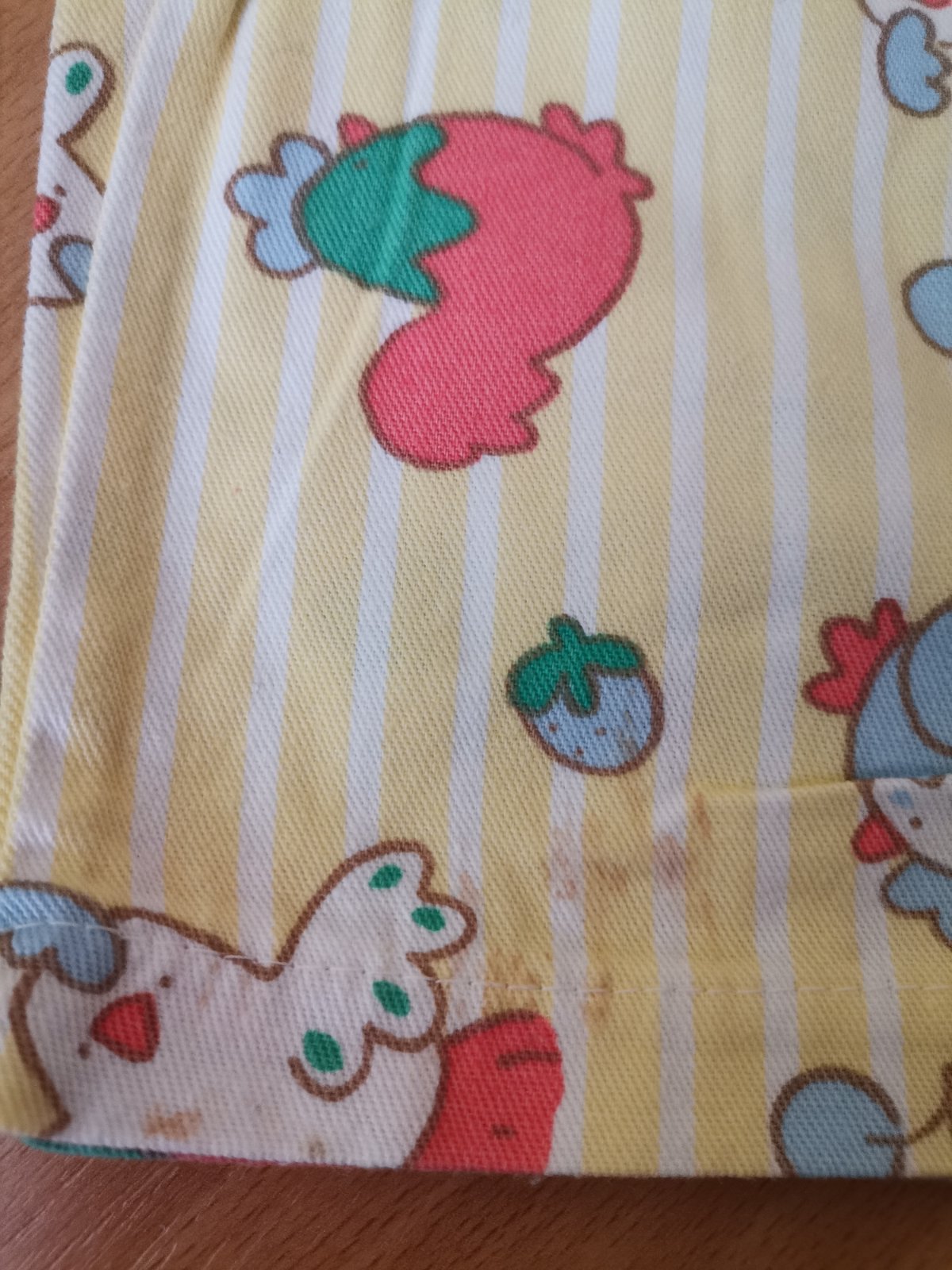 Na pravej nohe dole je fliačik od ovocia.