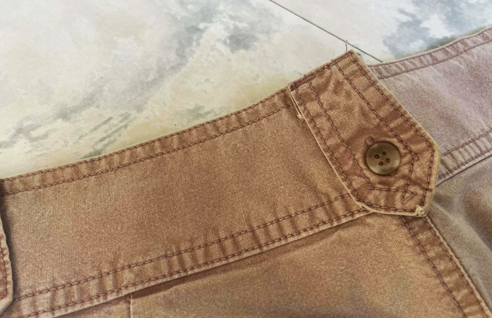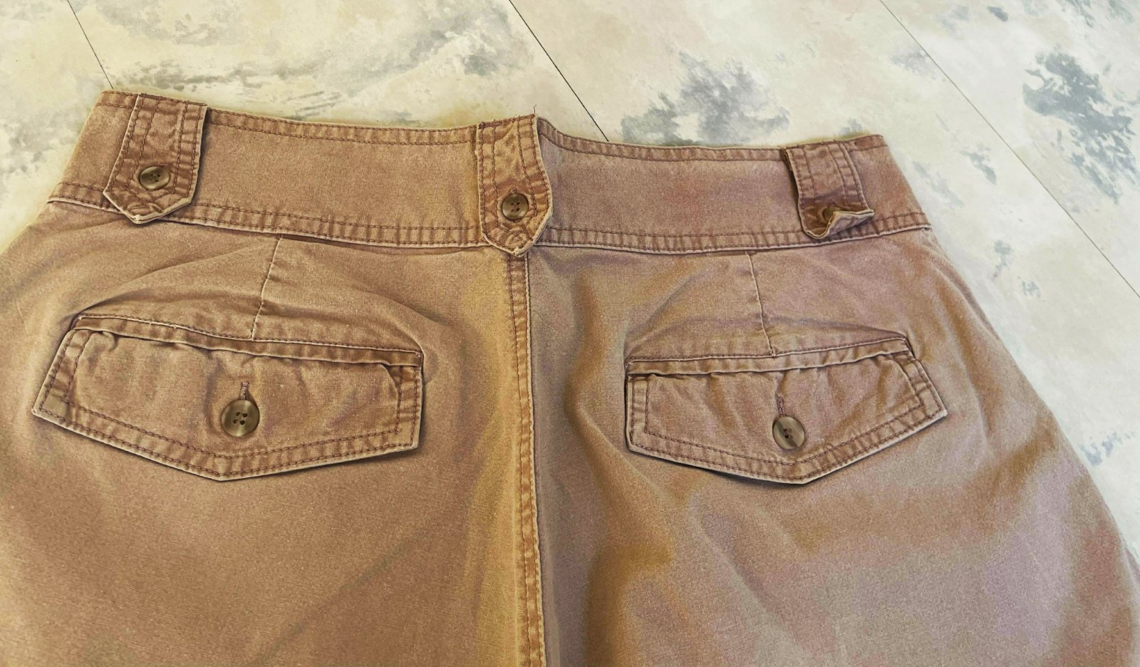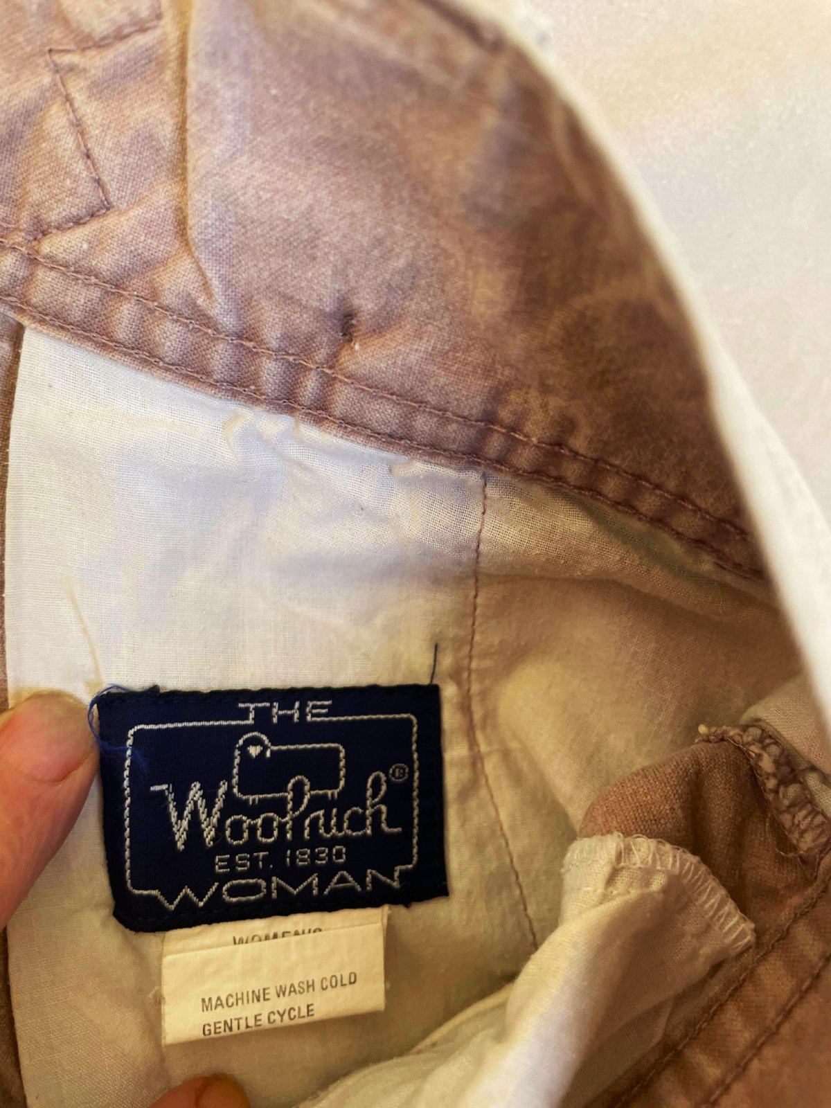 bavlnené plátenné bermudy po kolená s vysokým pásom,dvojitým zapínaním na pracky a prednými záhybmi,materiál jemne spraného vzhľadu - vintage,super sedia na postave,veľmi moderné a zaujímavé,vyzerajú podobne ako nohavicová sukňa,super na leto - vzdušné a nie je v nich horúco,značka Woolrich - vyfotená