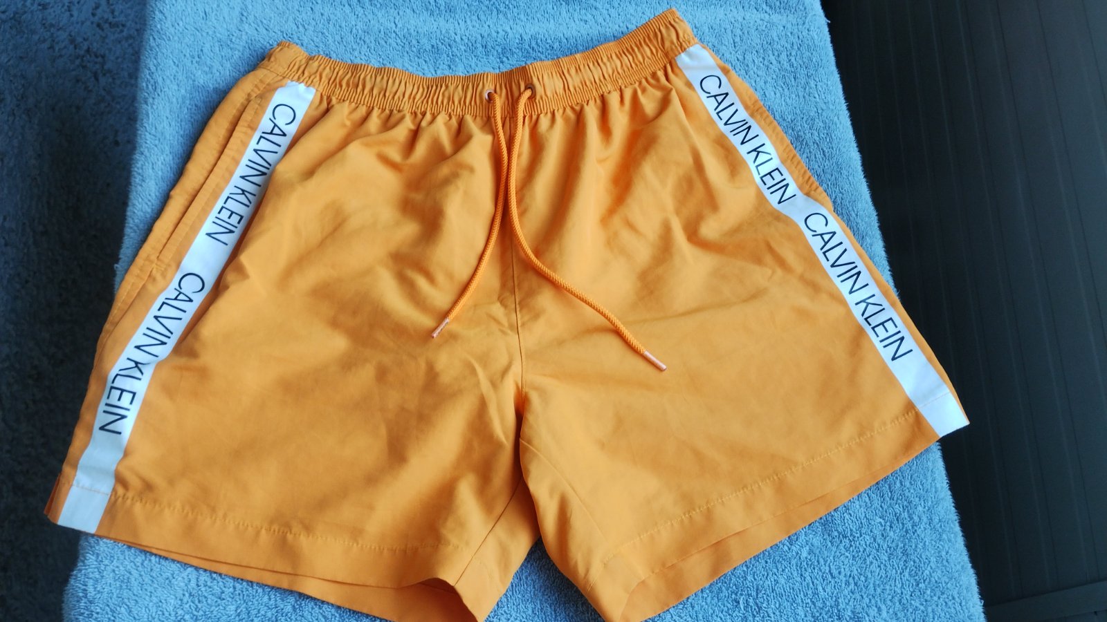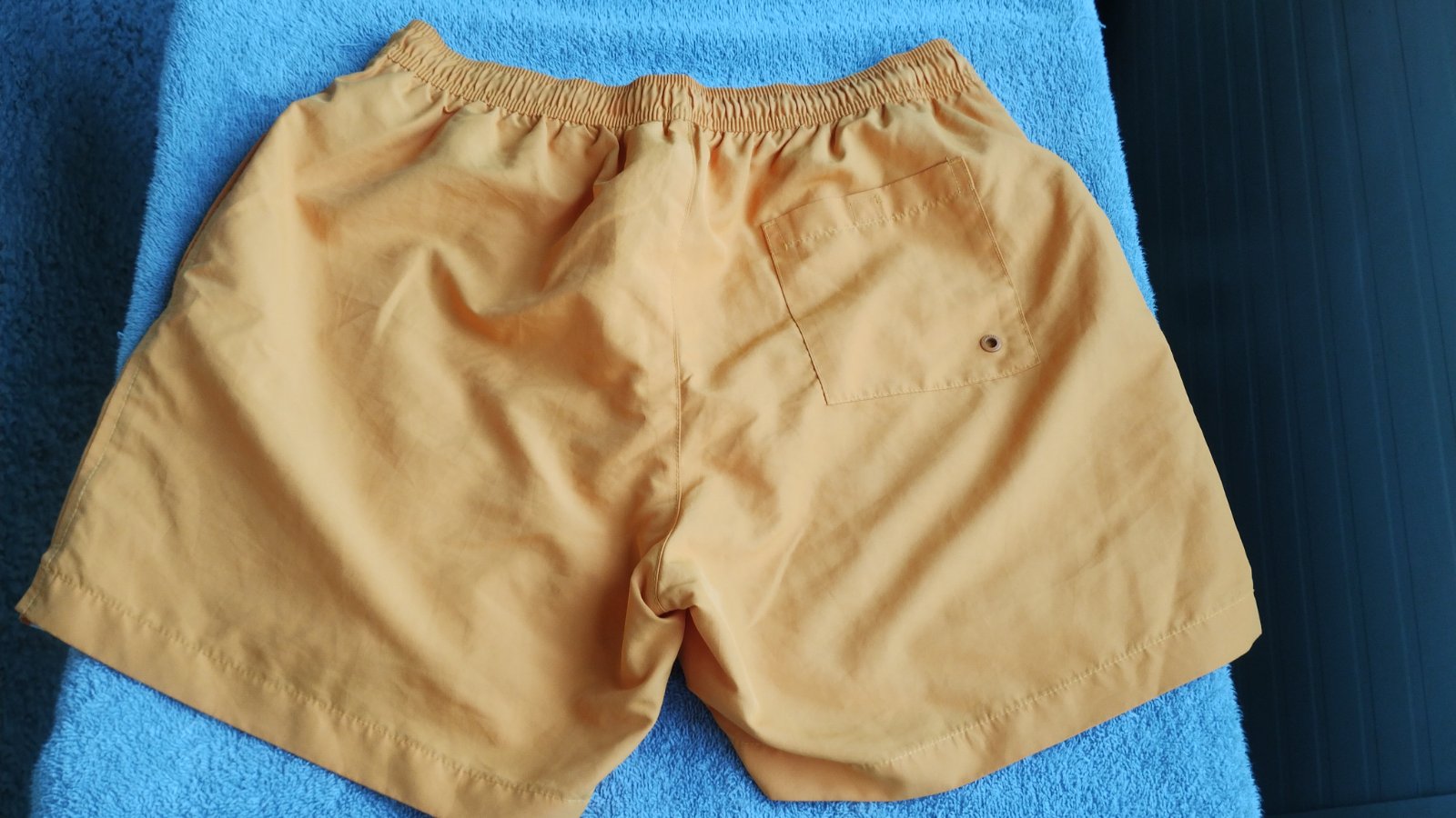veľmi kvalitné,nepoškodené, min.použité,krásna pestrá sýta oranžová farba,zdnu podšité vzdušnou sieťkou,rýchloschnúce,pás = 41- 45 x 2 cm,boky =59 x 2 cm, dlžka = 40 cm