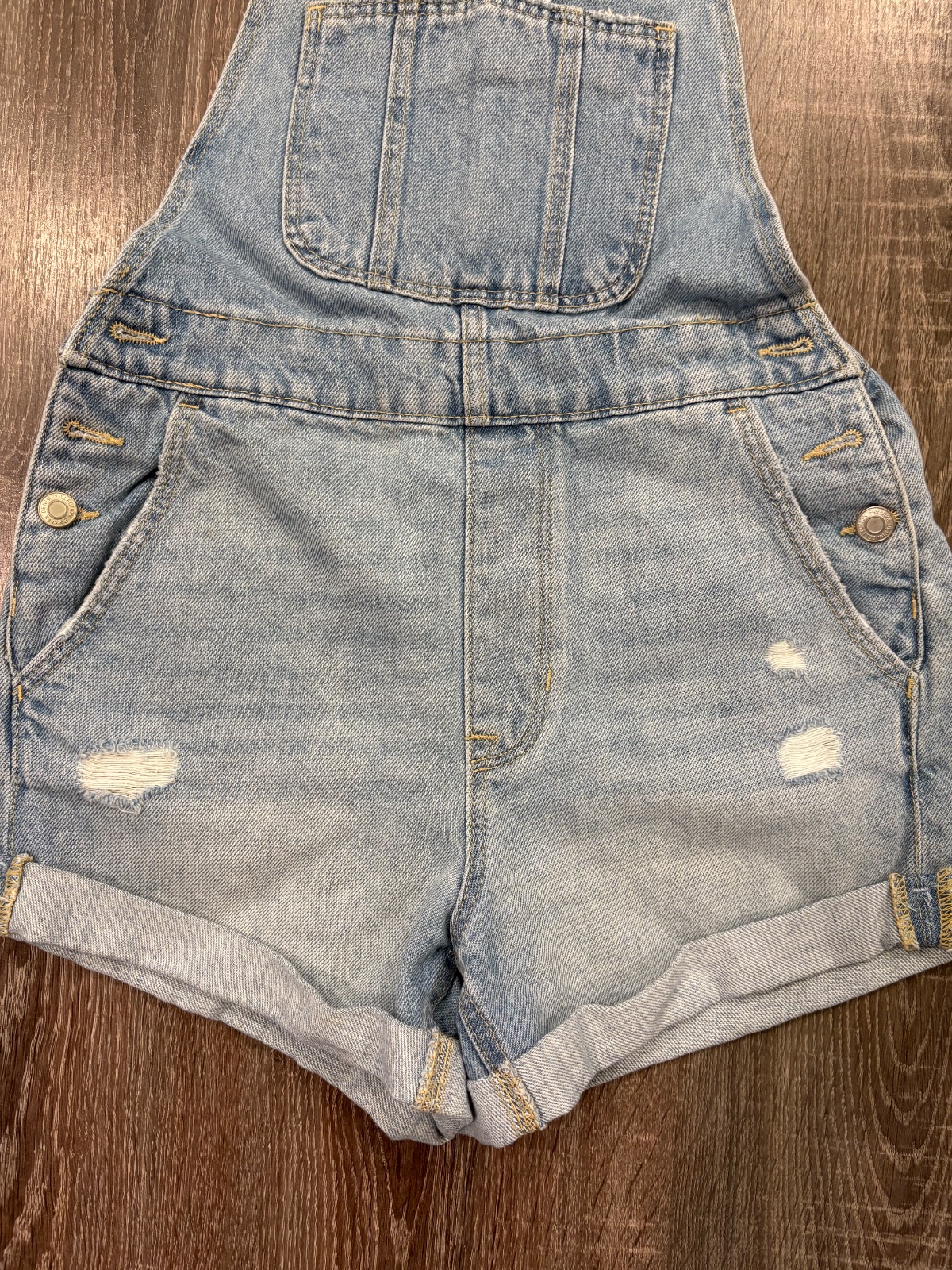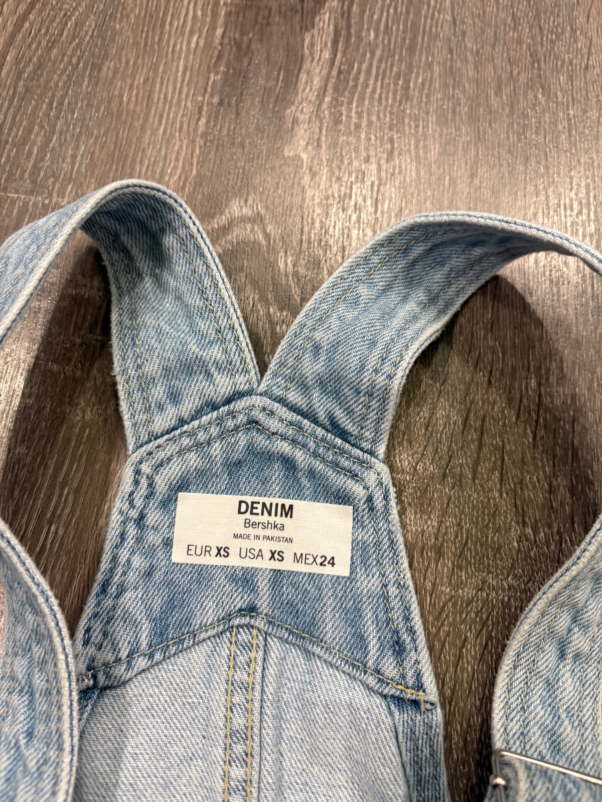 03.Bershka štylove damske riflove kratasy na traky,vo velkosti XS.ramienka si viete prisposobit ako potrebujete.Dlzka od pasa dole je 33cm a sirka v pase je 36x2cm